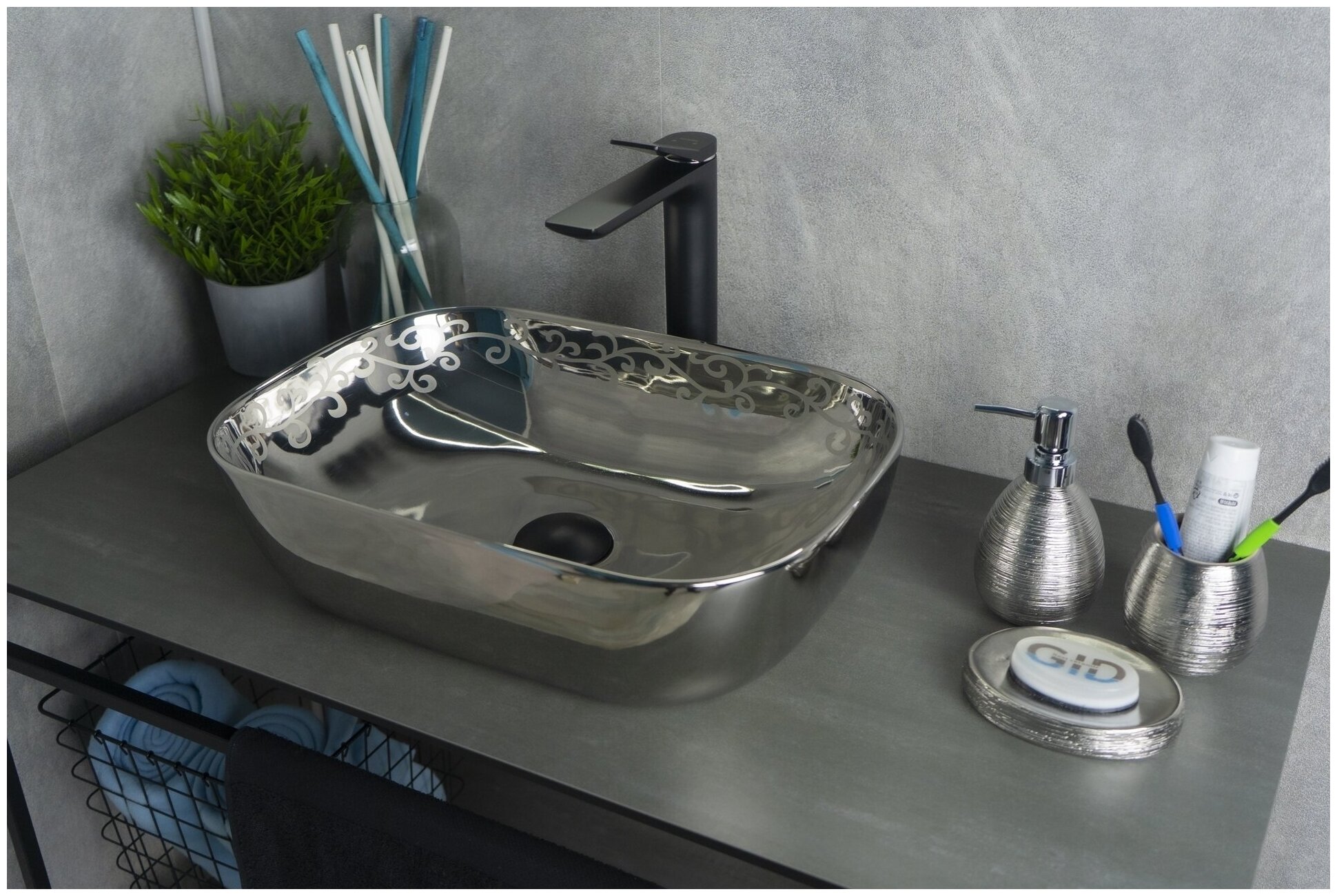 Керамическая накладная раковина для ванной Gid Nc425 серебряная с донным клапаном хром Hansen H6717