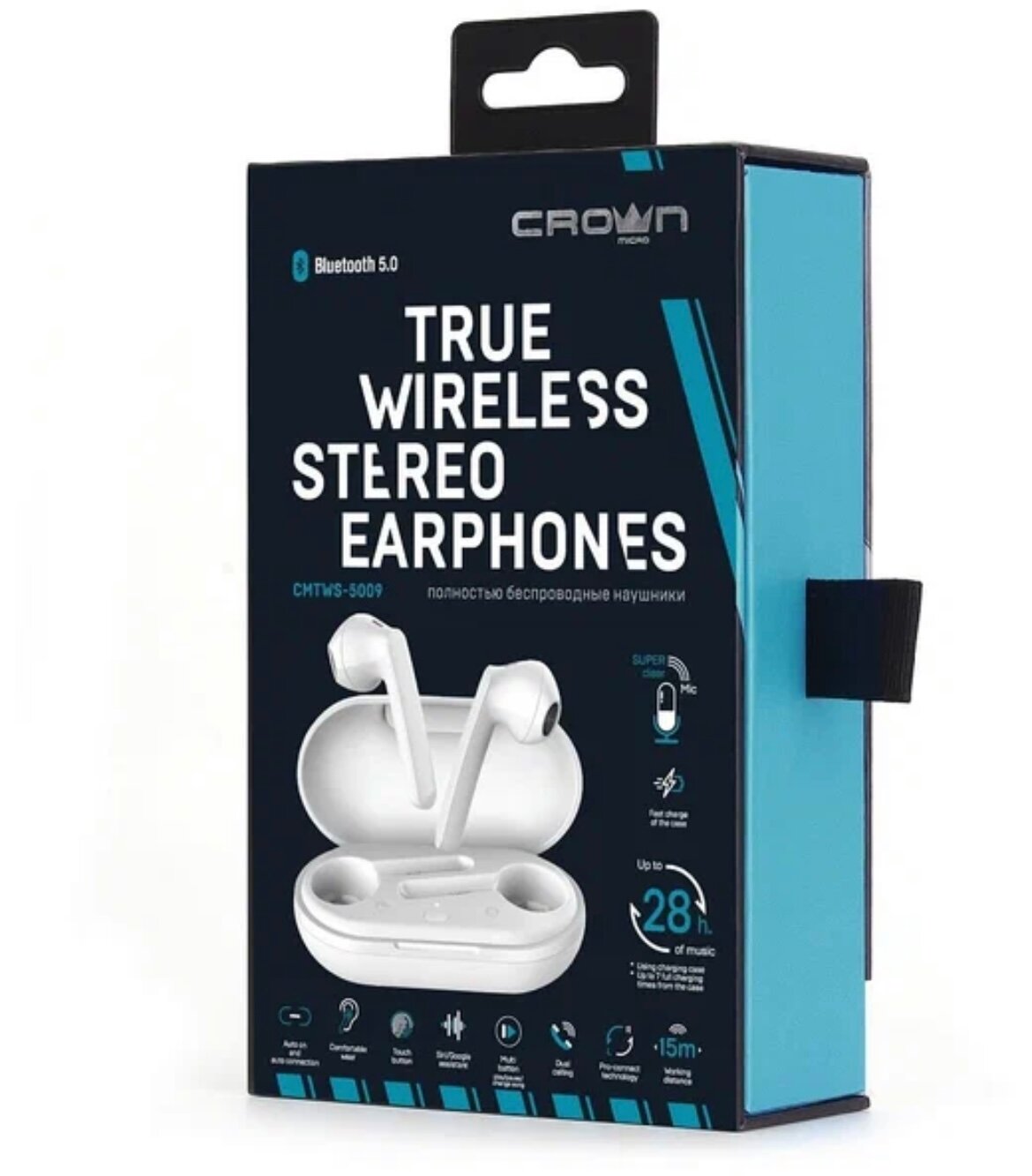 Беспроводные наушники CROWN MICRO CMTWS-5009, white интересное: