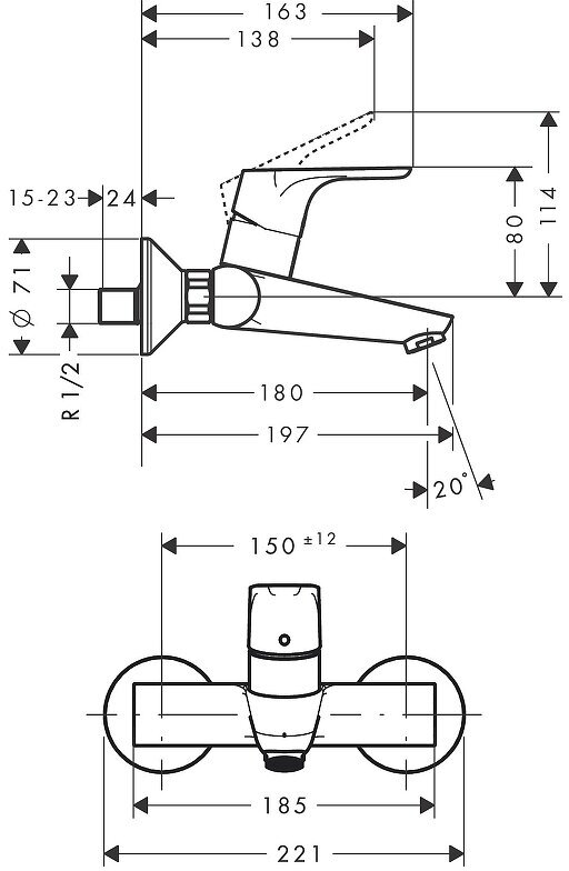 Смеситель для раковины Hansgrohe Focus, настенный монтаж, хром 31923000