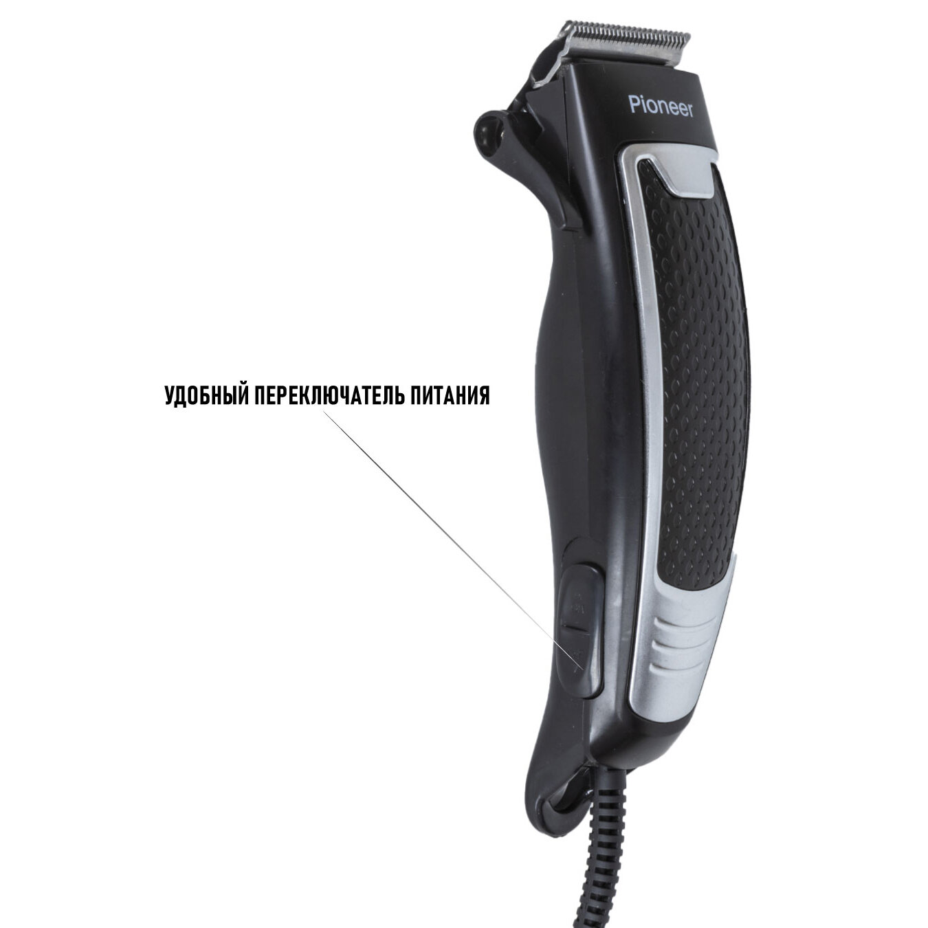 Машинка для стрижки Pioneer сетевая, стальные лезвия, с регулятором длины и насадками 3 мм, 6 мм, 9 мм, 12 мм, ножницы и расческа в комплекте, 10 Вт"