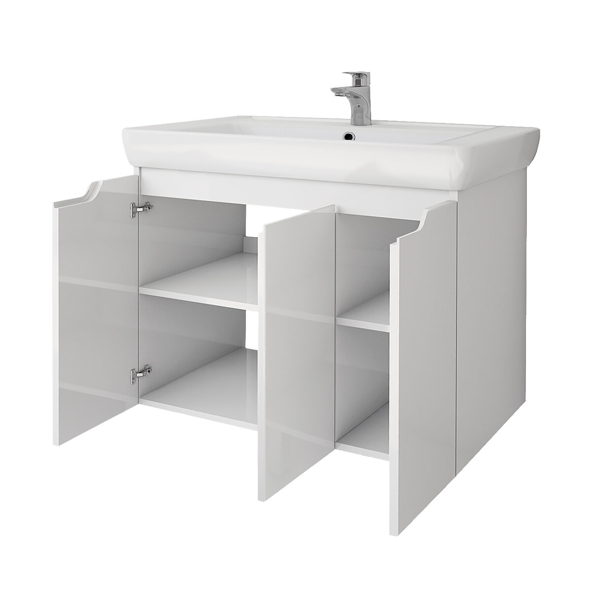 Тумба под раковину Dreja Q Plus 80 с дверцами, белый глянец (99.1006)