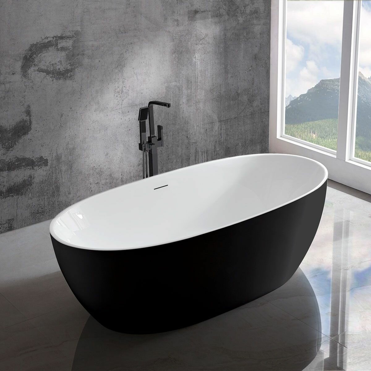 Ванна акриловая Vincea 170 x 80 x 58 см, слив-перелив в комплекте, черный/белый, VBT-405-1700MB
