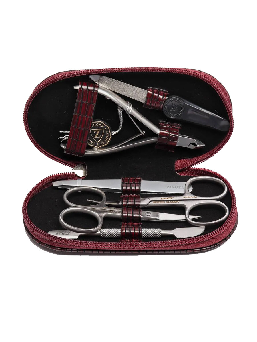 Маникюрный набор ZINGER на молнии MS-7104, 6 предметов, чехол новое бордо рептилия