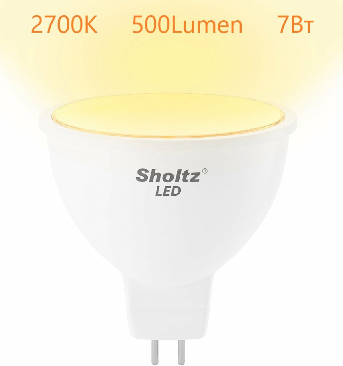 Лампа светодиодная энергосберегающая Sholtz 7Вт 220В софит MR16 GU5.3 2700К пластик(Шольц) LMR3033 интересное: