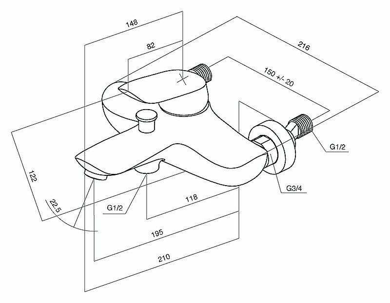 Смеситель для ванны AM.PM Bliss L F5310032 излив 195 мм