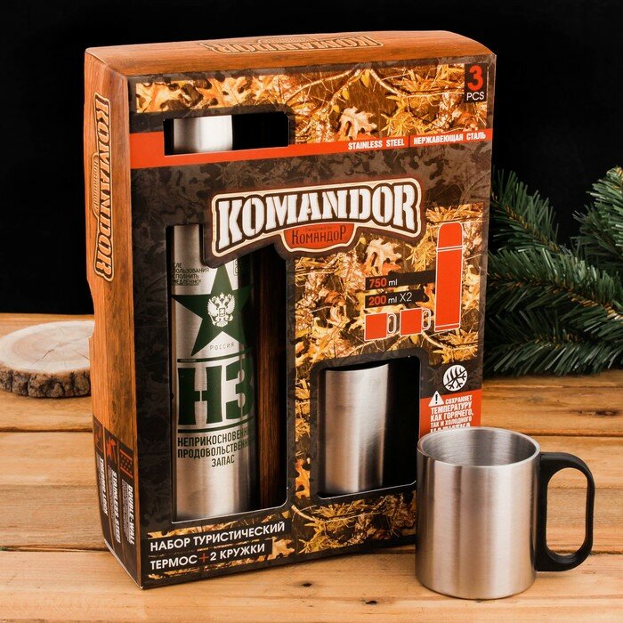 Командор Набор «НЗ»: термос 750 мл, кружка 200 мл, 2 шт., время сохранения тепла 24 ч