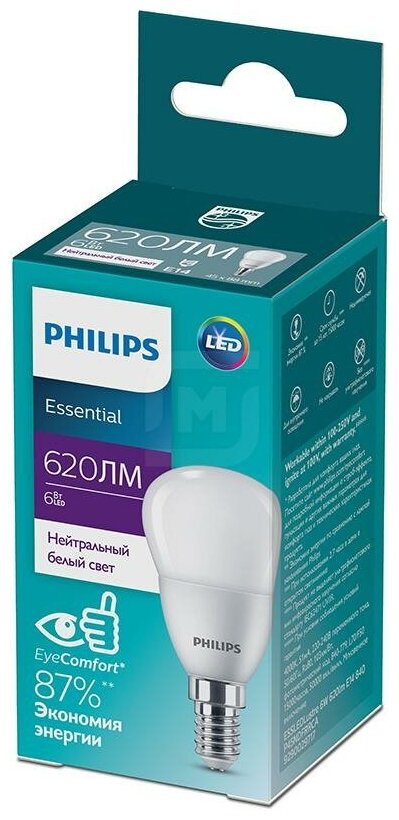Лампа светодиодная ESS LEDLustre 6Вт P45FR 620лм E14 840 PHILIPS 929002971707 интересное: