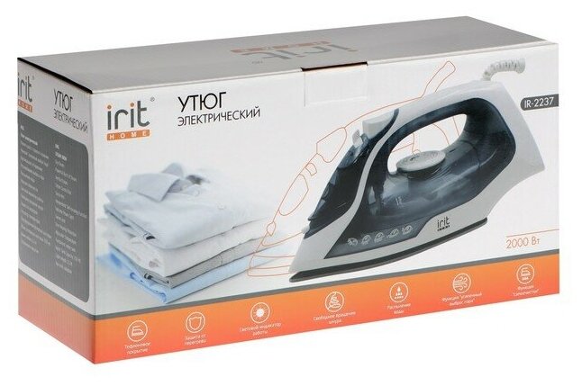 Утюг Irit Ir-2237, 2000 Вт, тефлоновая подошва, 250 мл, шнур 1.5 м, серо-белый Irit 9383553 интересное: