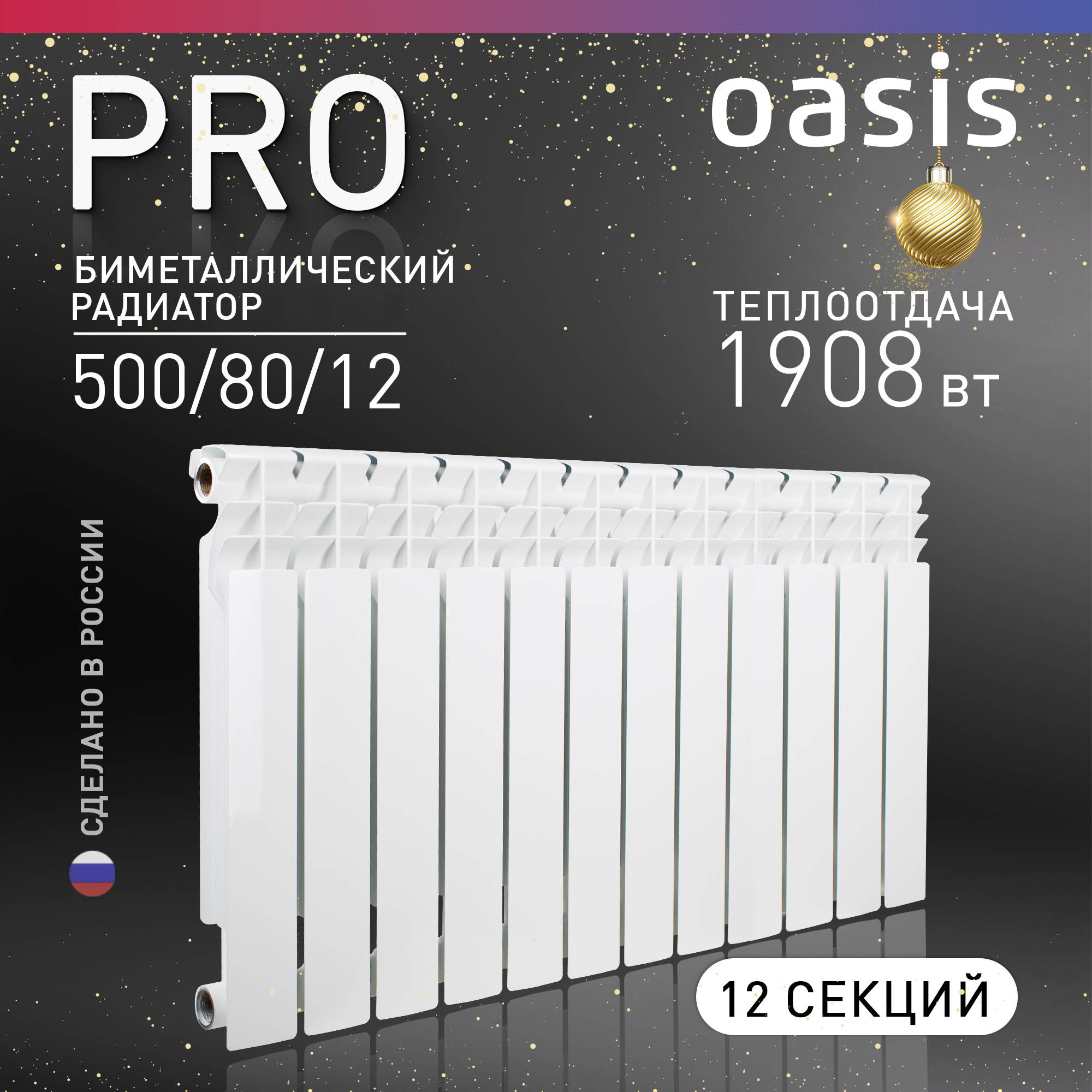 Радиатор отопления биметаллический Oasis Pro, модель 500/80/12, 12 секций