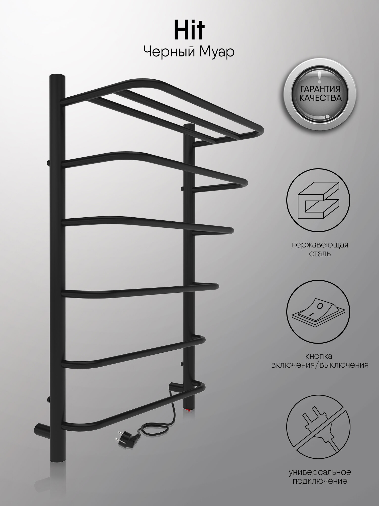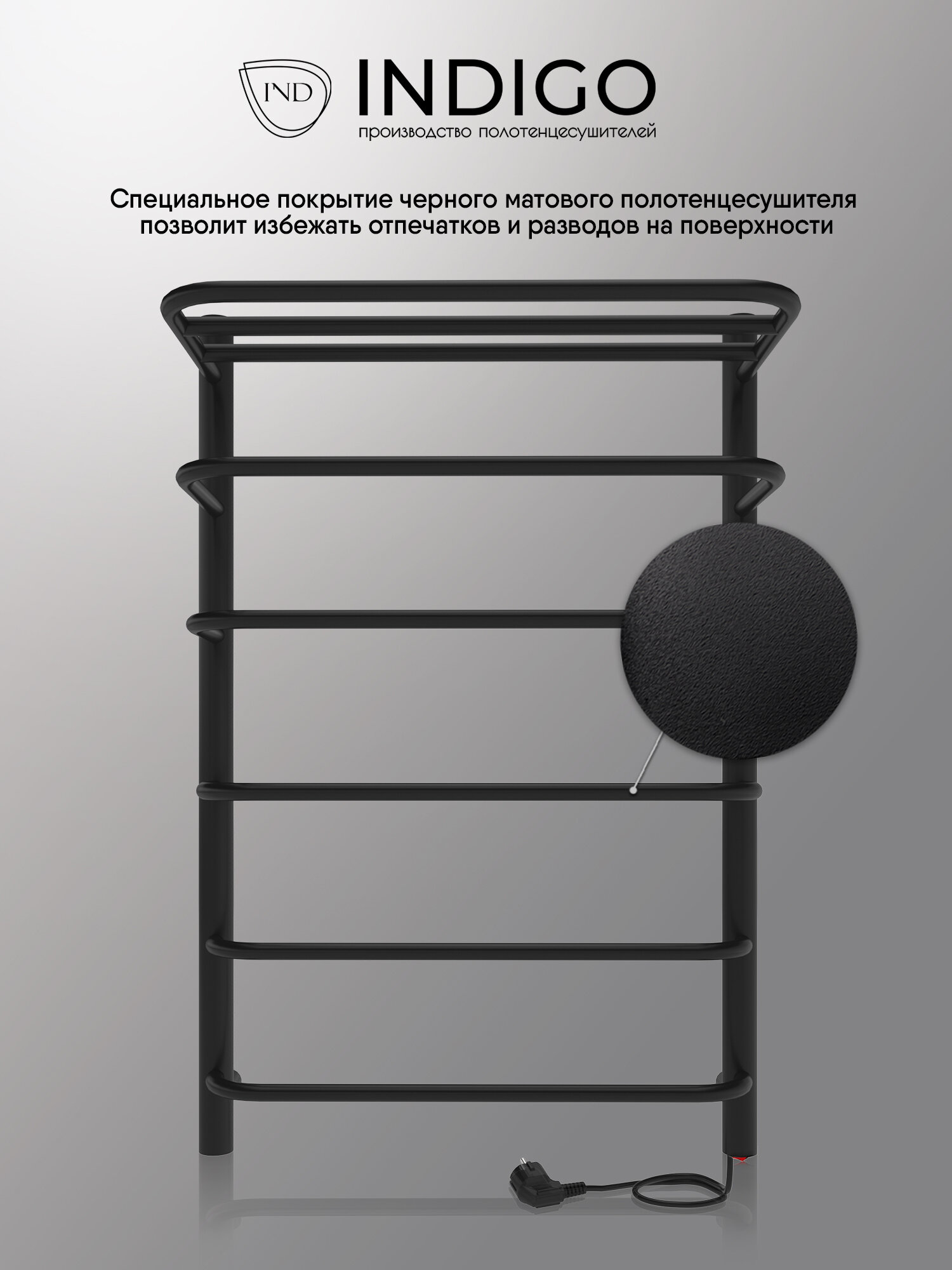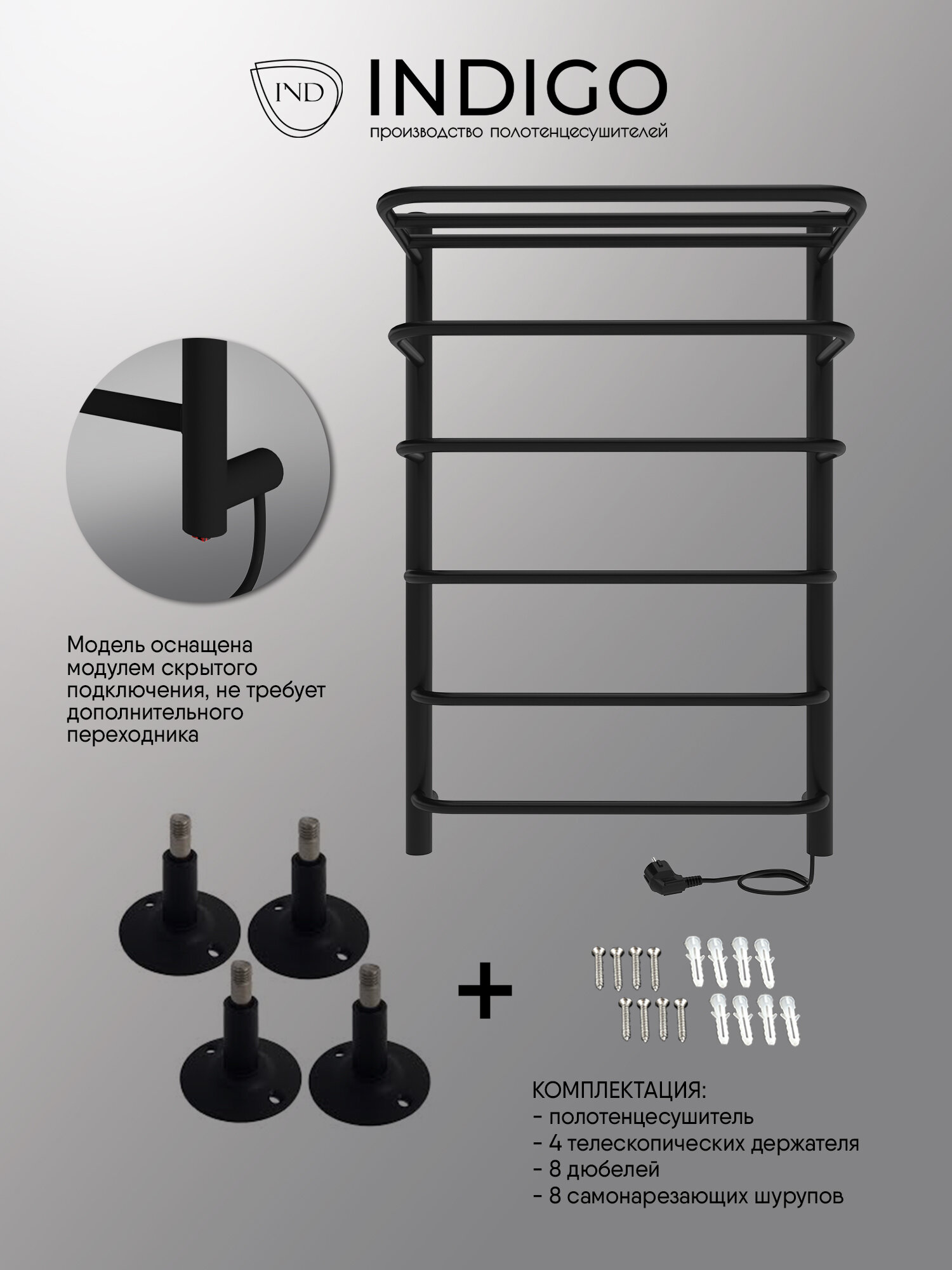 Полотенцесушитель электрический INDIGO Hit 60/50 скрытый монтаж, универсальное подключение Черный муар