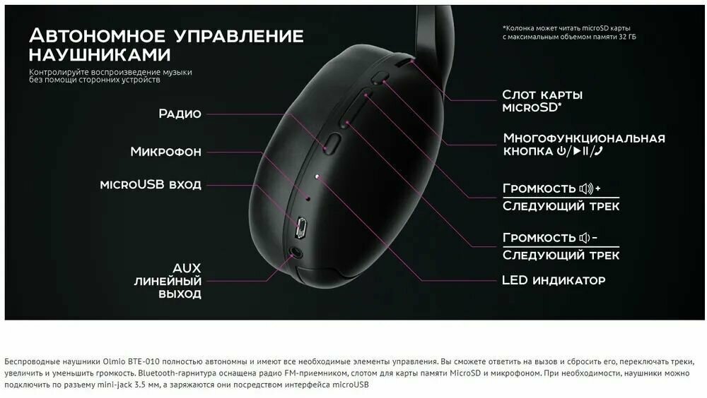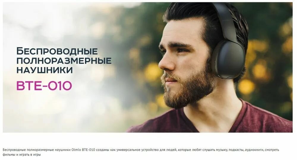 Наушники беспроводные Olmio BTE-010 черный интересное:
