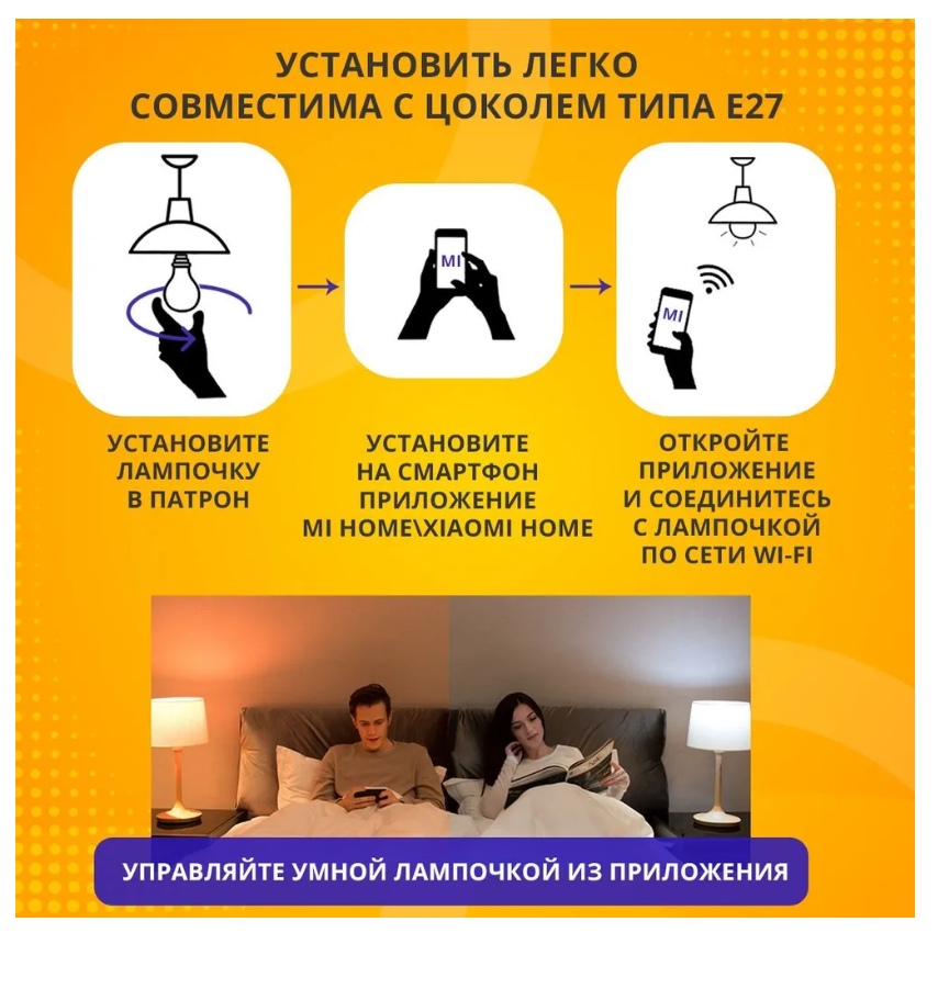 | Отзыв: | Доволен лампочками, у меня их 4 шт. Управляю только через приложение. Очень удобно и современно |