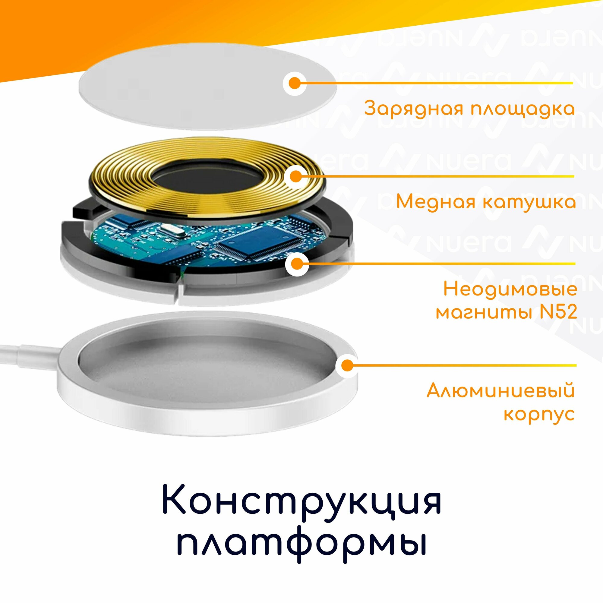 Купить Беспроводное зарядное устройство для iPhone, AirPods с функцией MagSafe, магнитное, USB Type-C, 15 Вт / Original Drop