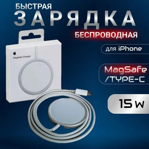 Магнитное беспроводное зарядное устройство для Apple с MagSafe 15W / для iPhone c функцией быстрой зарядки 15 ватт / чехол для хранения в комплекте
