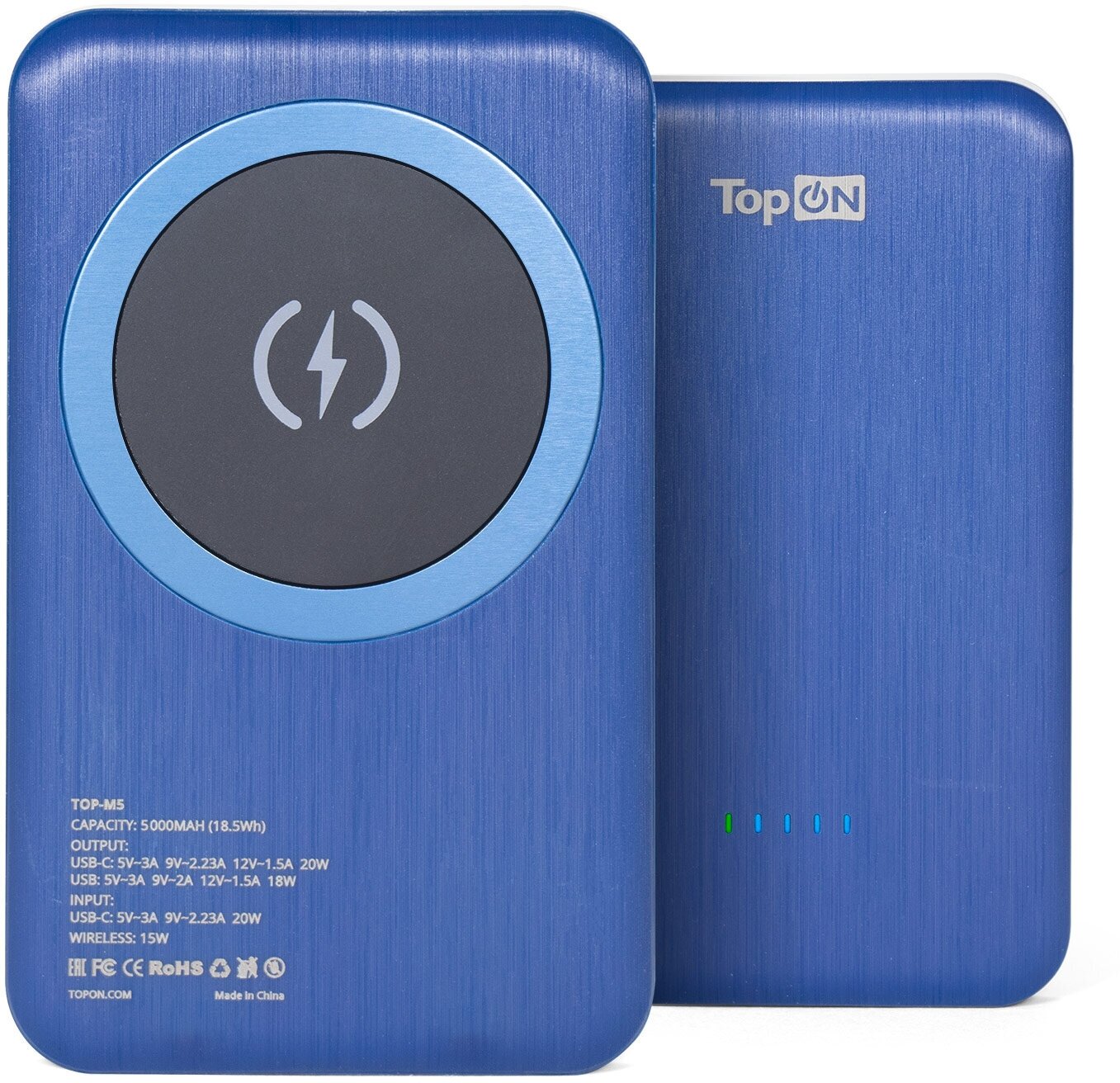 Внешний аккумулятор TopON 5000mAh (TOP-M5B) с магнитной беспроводной зарядкой, синий