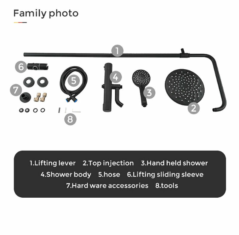 | Комплектация | смеситель 1 шт / верхний душ / 1 шт / душевая штанга 1 шт / ручной душ1 шт / душевой шланг 1 шт / держатель ручного душа 1 шт |