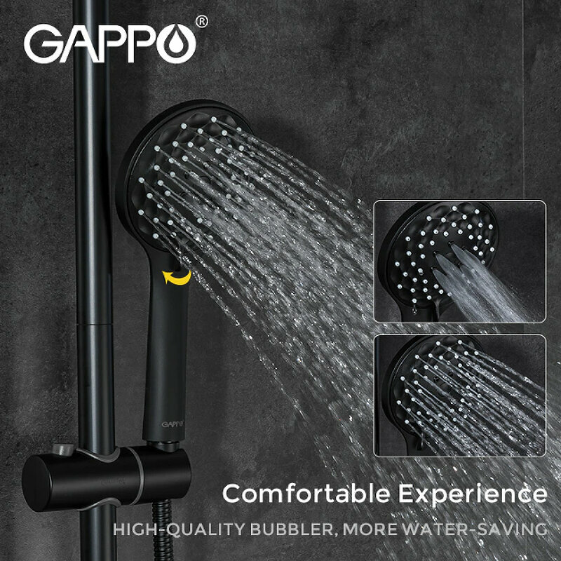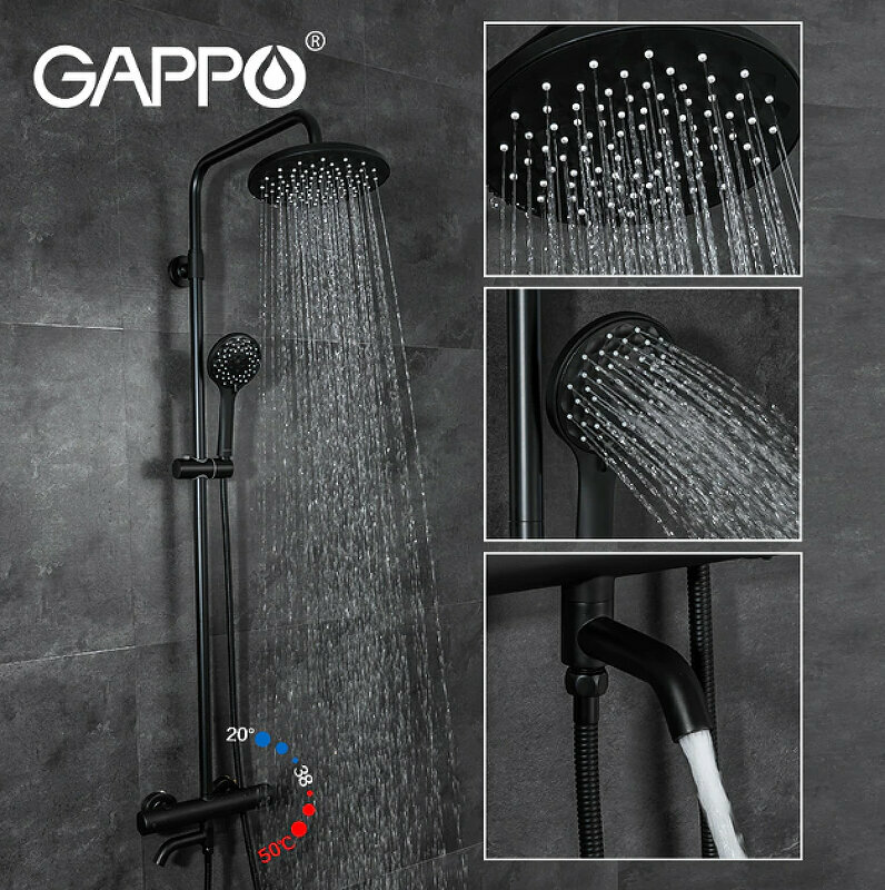 Душевая система для ванны, Gappo, термостатическая, черная, G2490-6