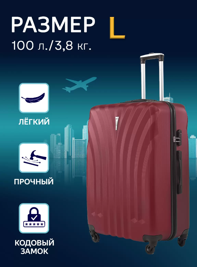 Чемодан семейный на колесиках L'Case Phuket(материал: ABS-пластик, кодовый замок, съемные колесики, размер L, Black)