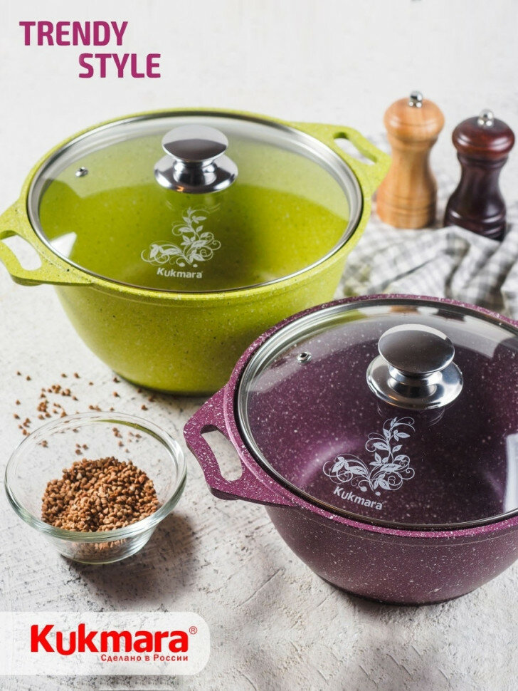 Кастрюля Kukmara Trendy style, 4 л, стеклянная крышка, антипригарное покрытие, мистерия