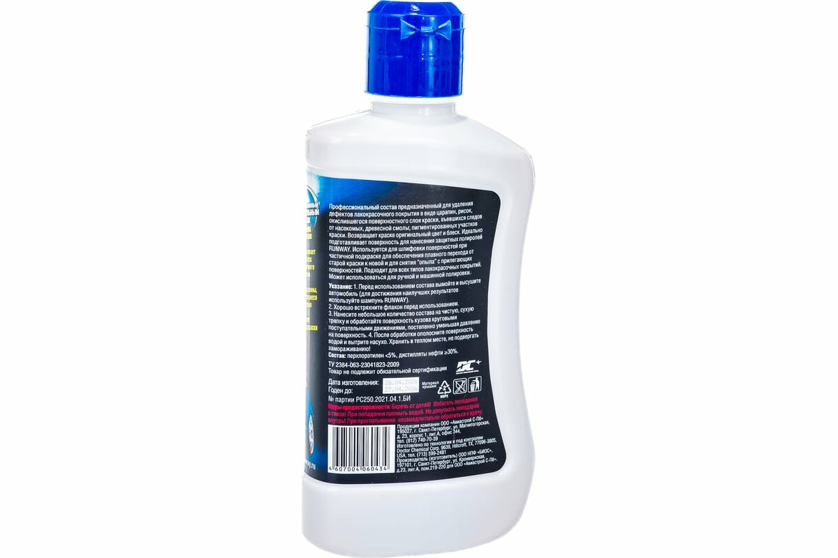 Полироль кузова Runway Polishing Compound, мелкоабразивный, для очищения и восстановления лакокрасочного покрытия, бутылка 250мл, арт. RW2543