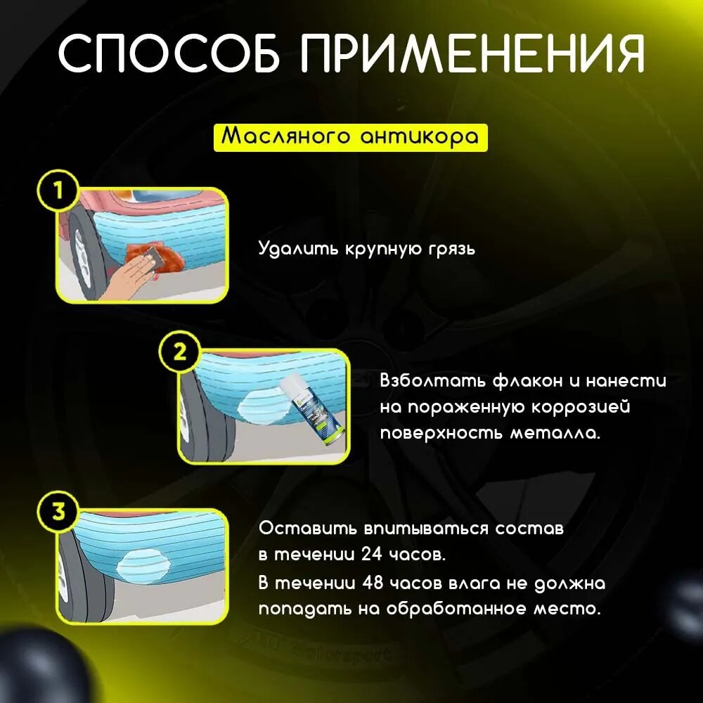 | Область применения | корпус / электрические контакты / колесные арки / пороги / скрытые полости / дно / моторный отсек |