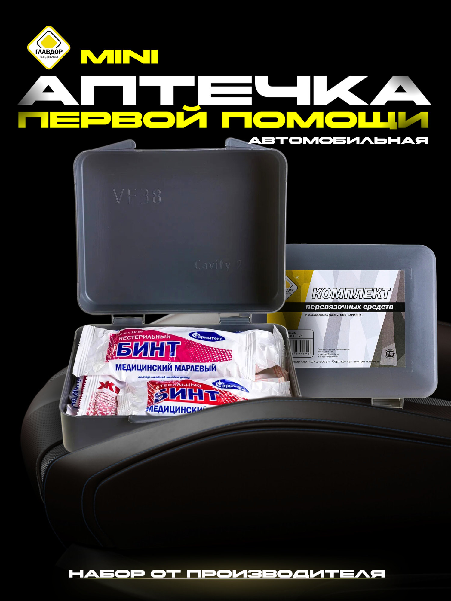 Аптечка автомобильная первой помощи "главдор" GL-25 (компл. перевязочных средств) мини интересное: