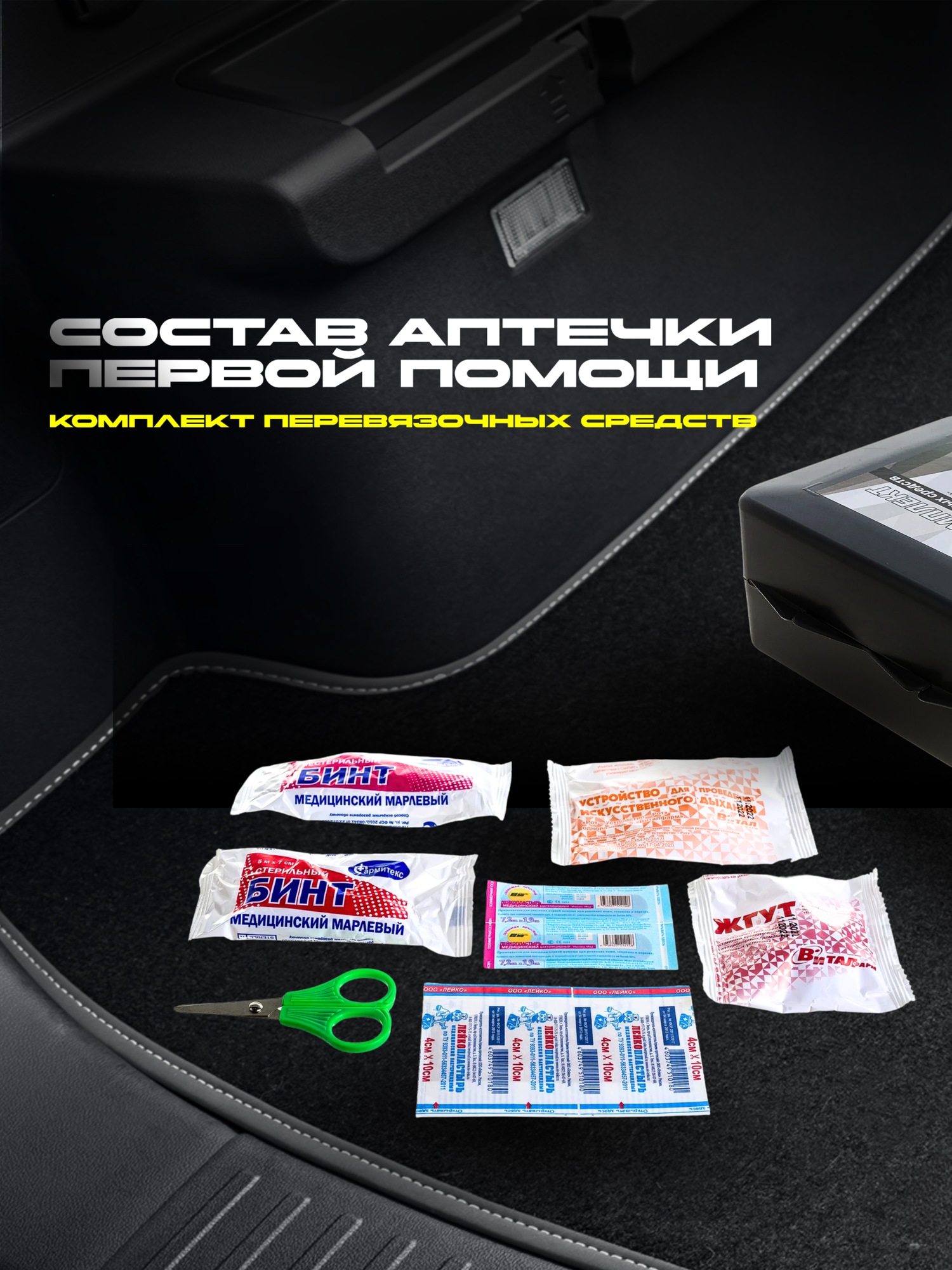 Аптечка автомобильная ФЭСТ футляр из полистирола, новый состав по приказу № 1080Н от 08.10.20