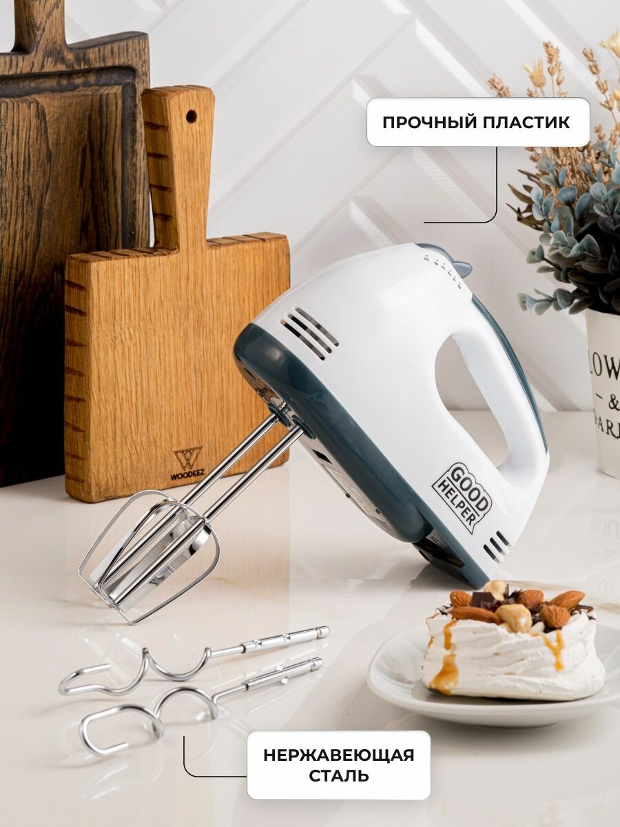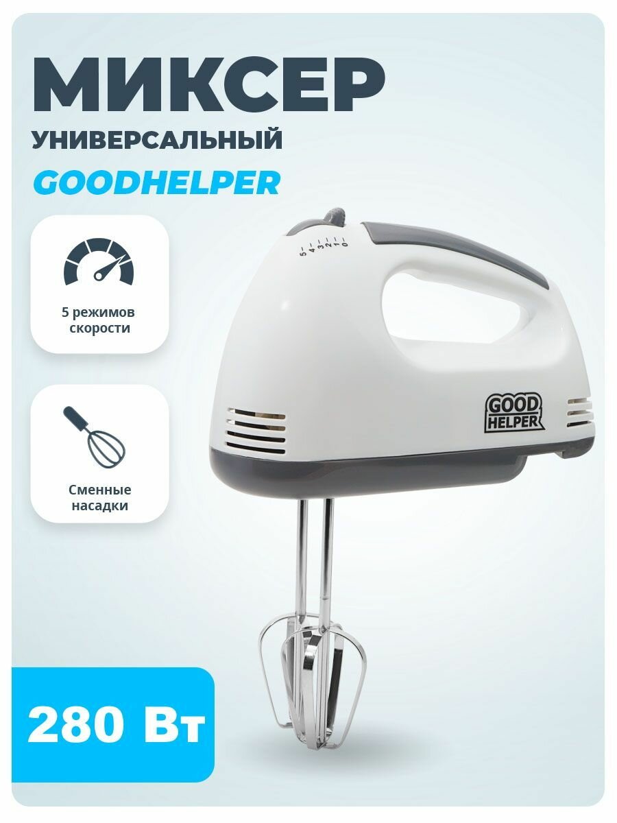Миксер GOODHELPER НМ-371, ручной, 280 Вт, 5 скоростей, 2 насадки