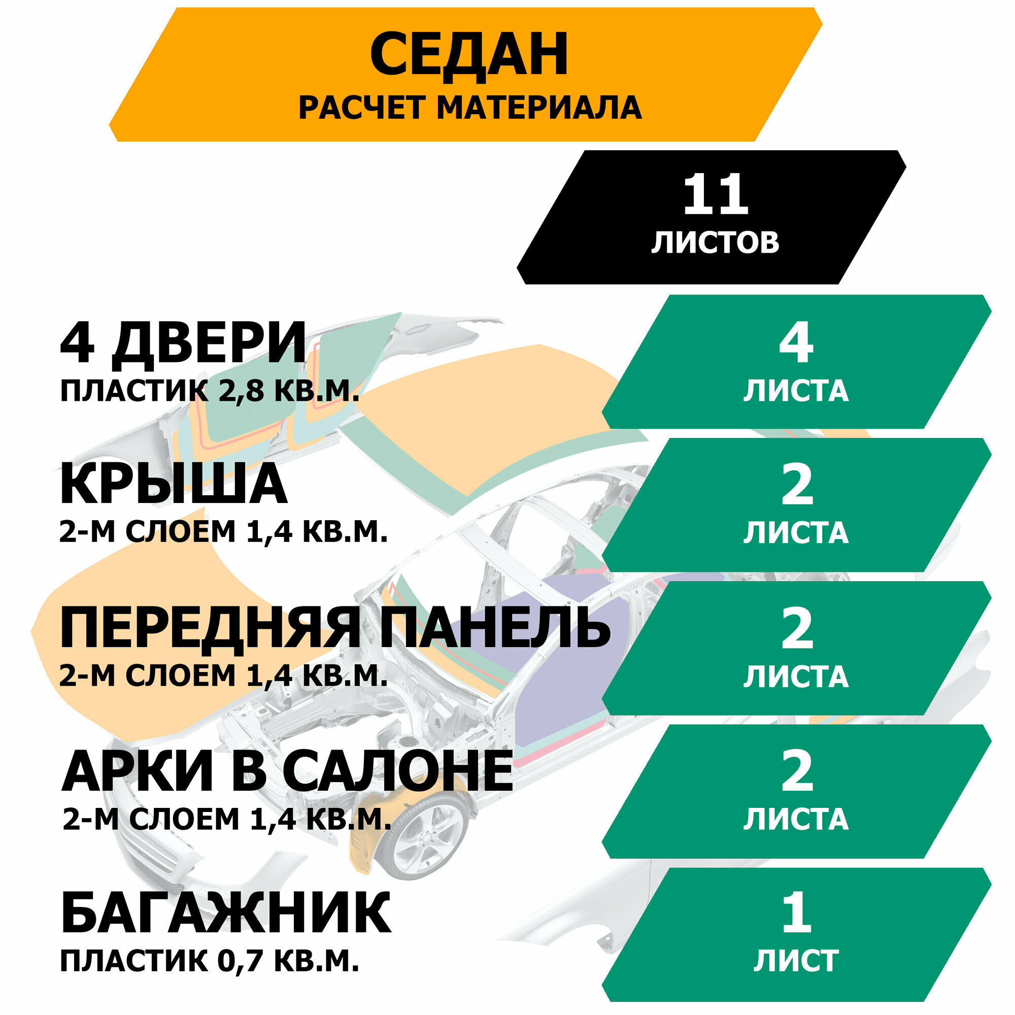 Шумофф Reflex 2 - 36 листов 37.5 см х 23 см Виброизоляция для автомобиля - для потолка, дверей, капота, багажника - толщина 2.0 мм