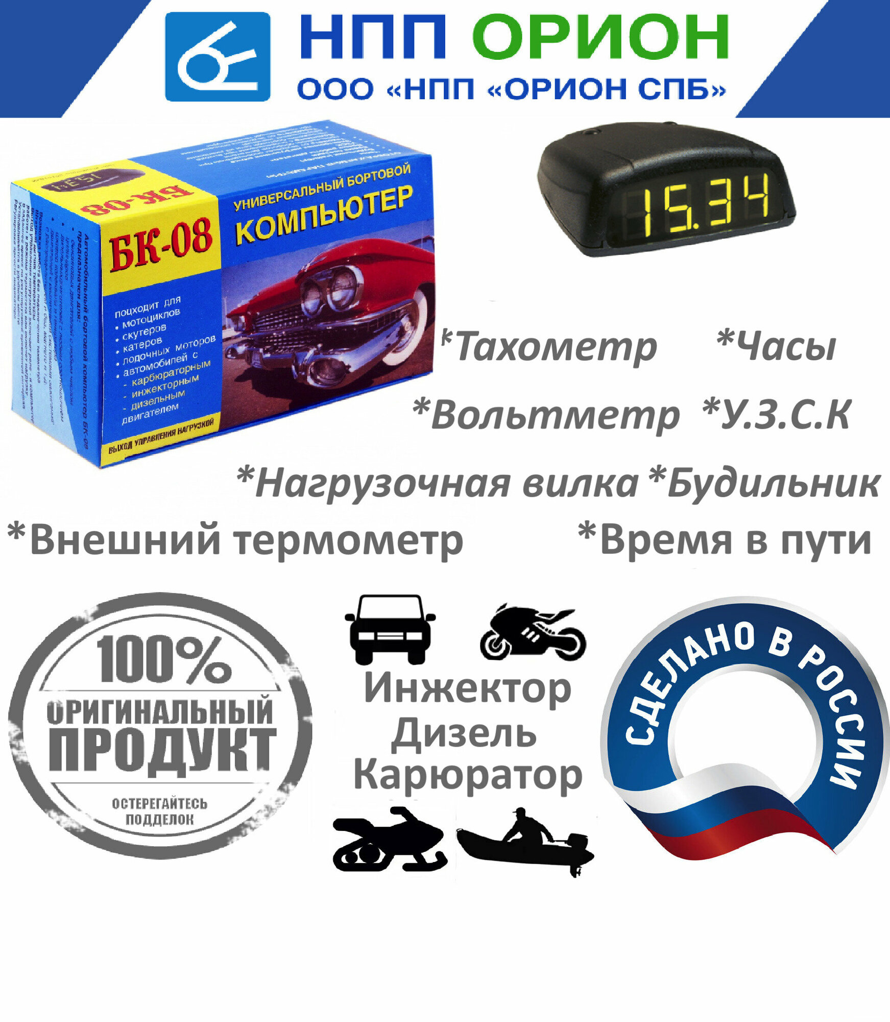 Компьютер бортовой -08 (бенз+диз,тахометр.часы,вольтметр,узск+доп.датчик) (Орион НПП) вымпел 3020