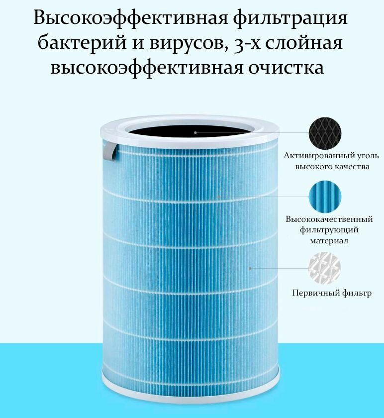 Угольный фильтр Xiaоmi Mi Air Purifier 2/2S/2H/Pro/3/3H, M2R-FLP, голубой, для очистителя воздуха
