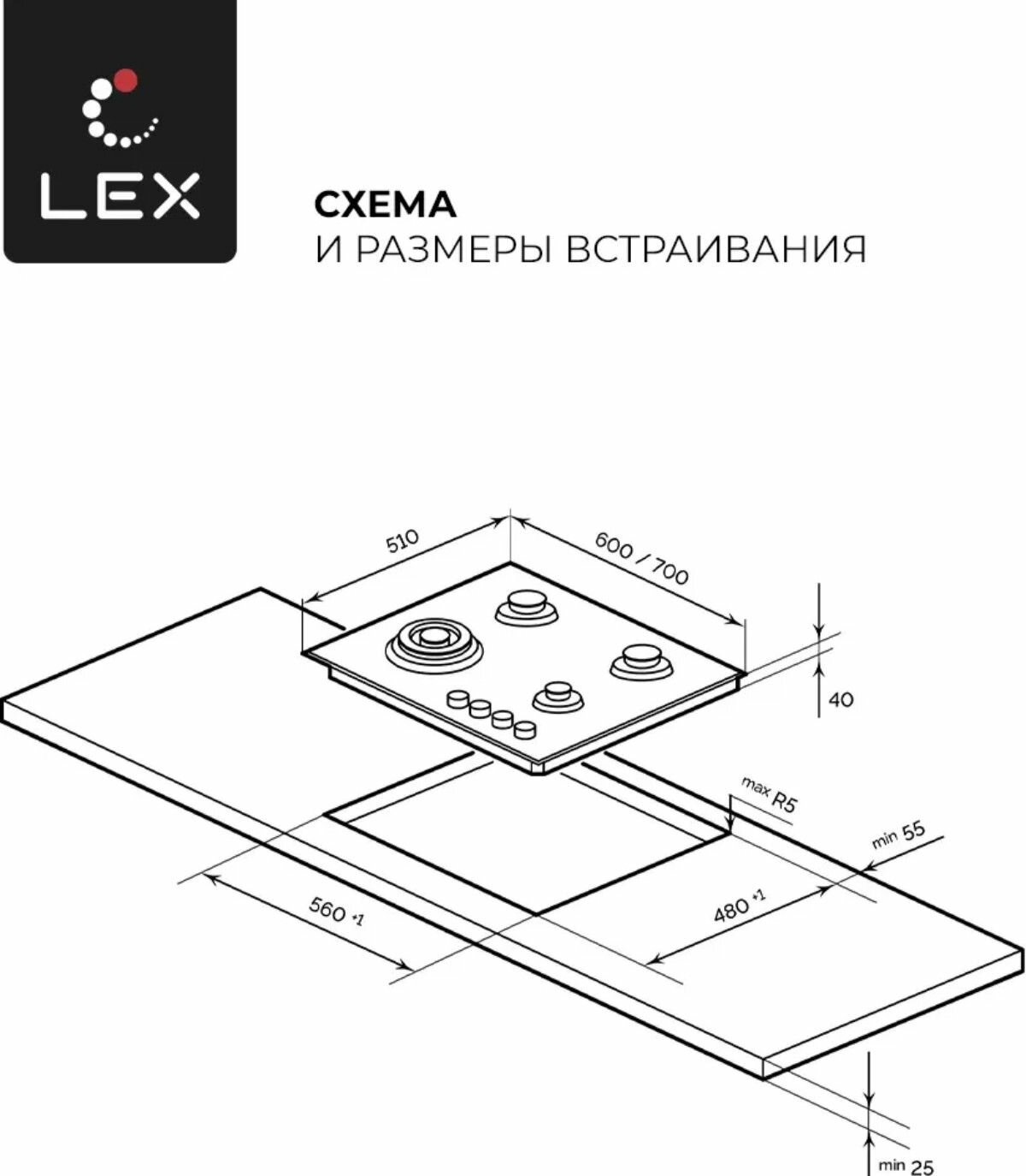Встраиваемая газовая варочная панель LEX GVS 644-1 IX