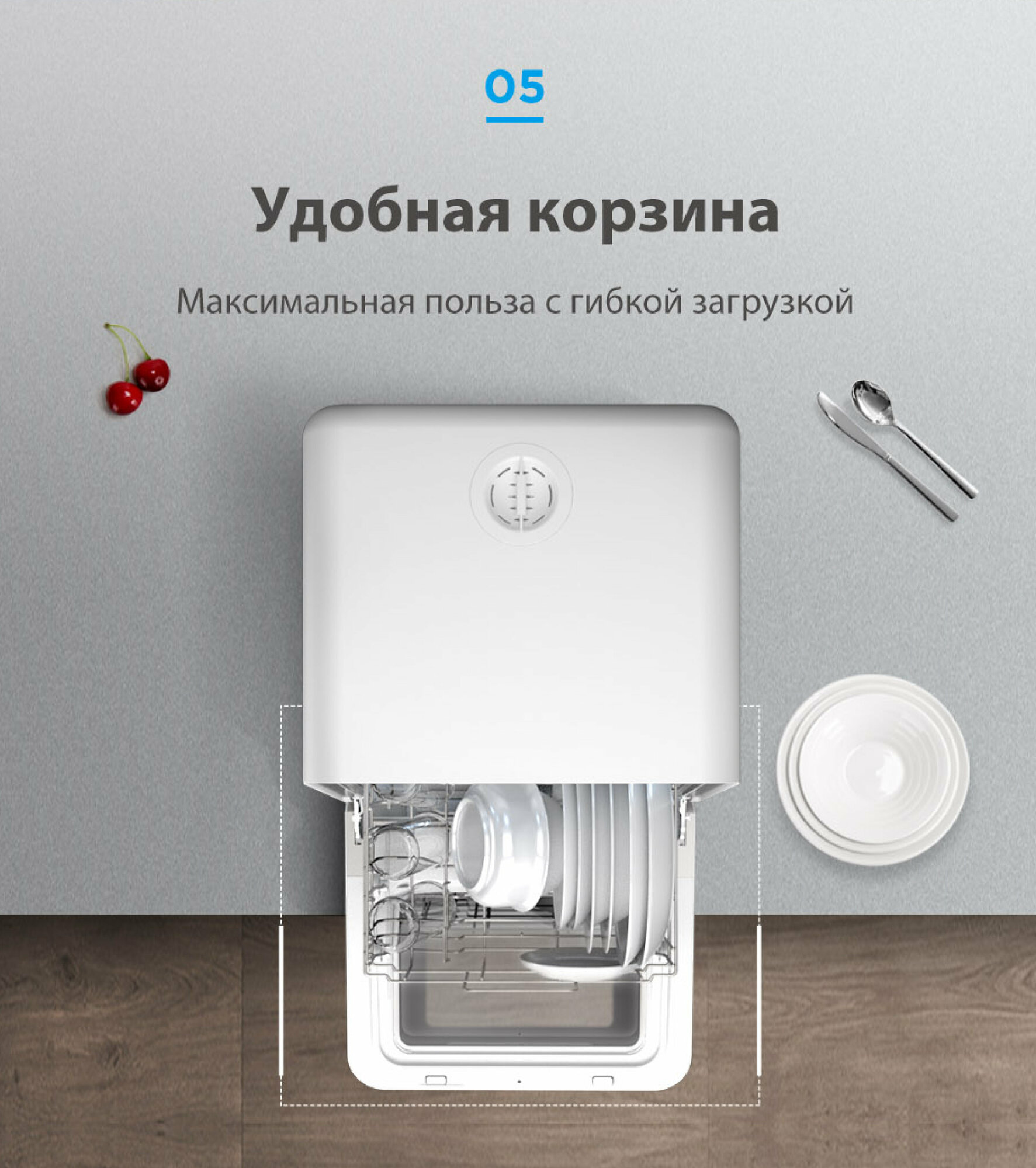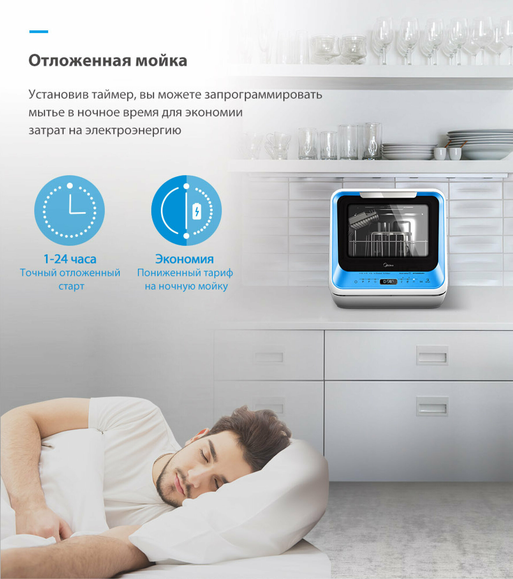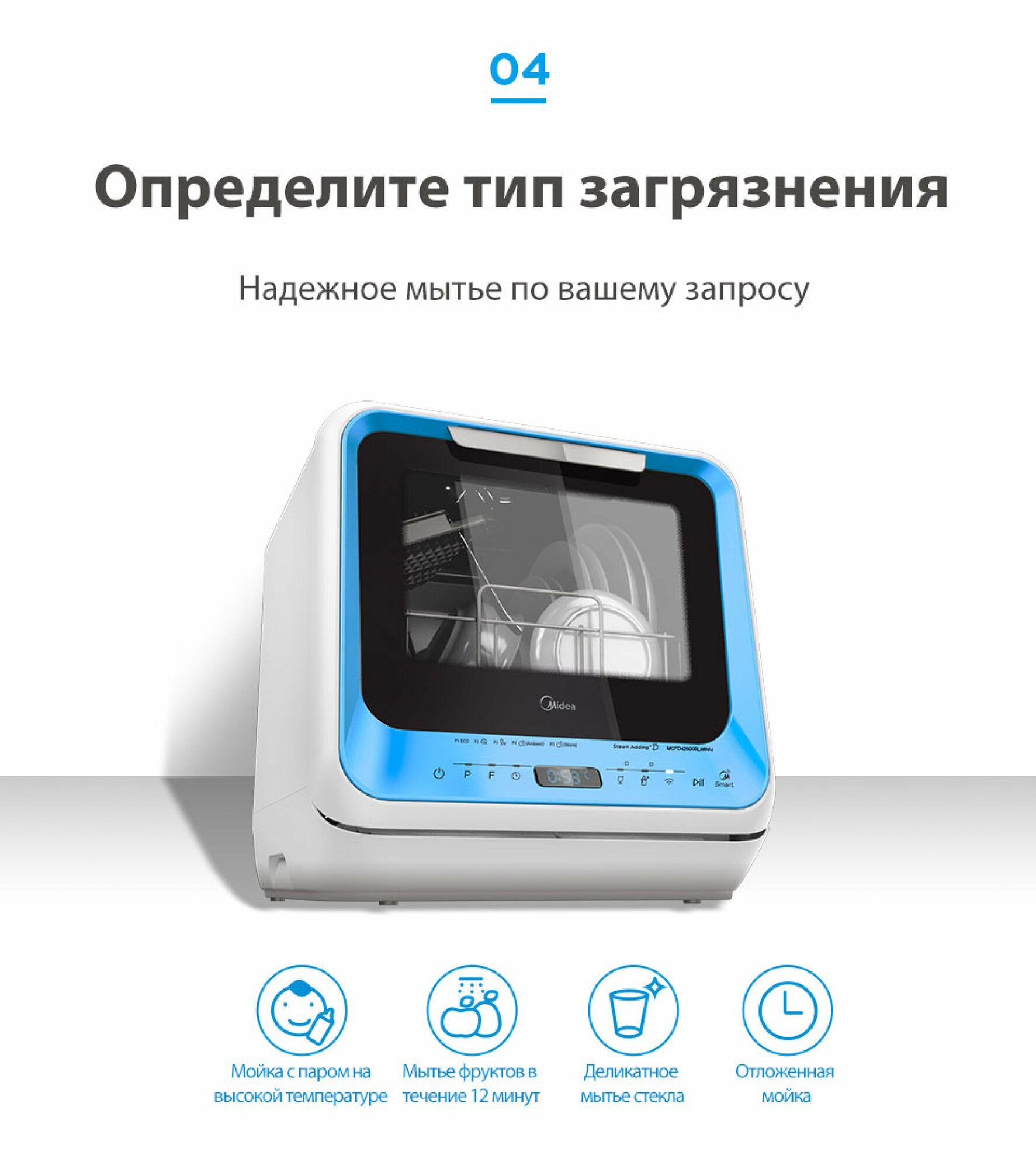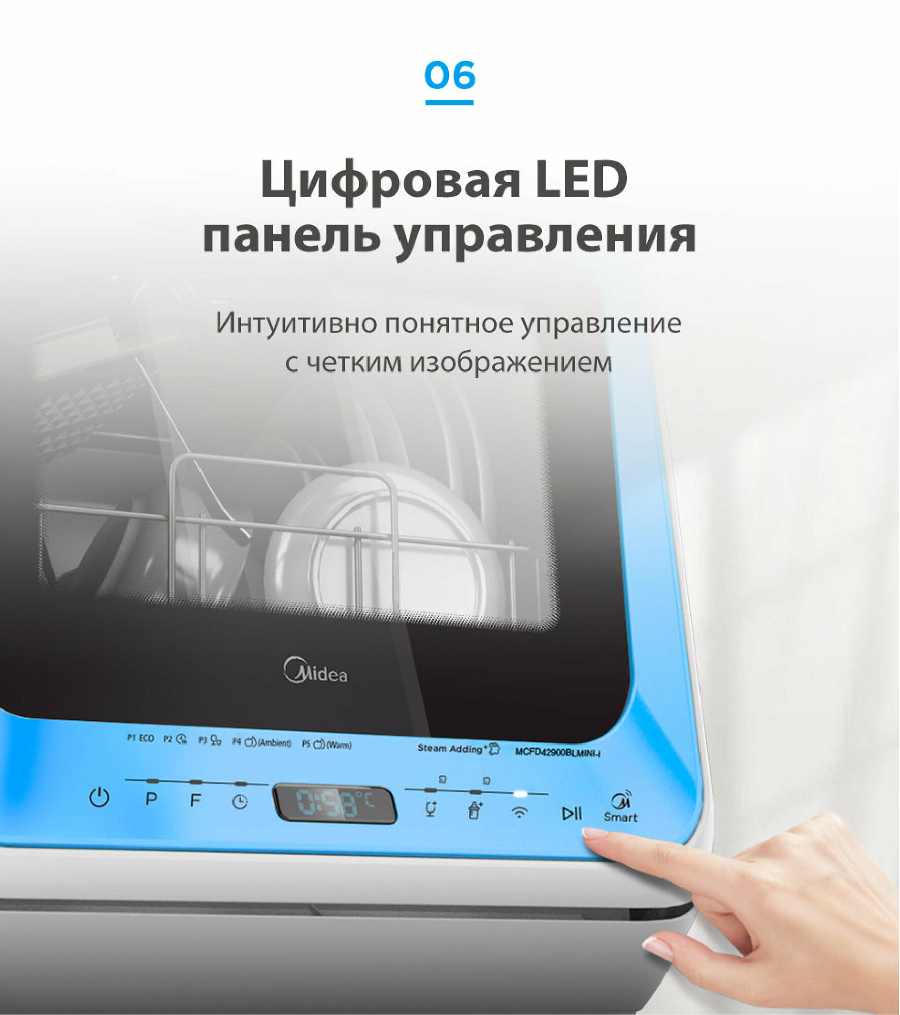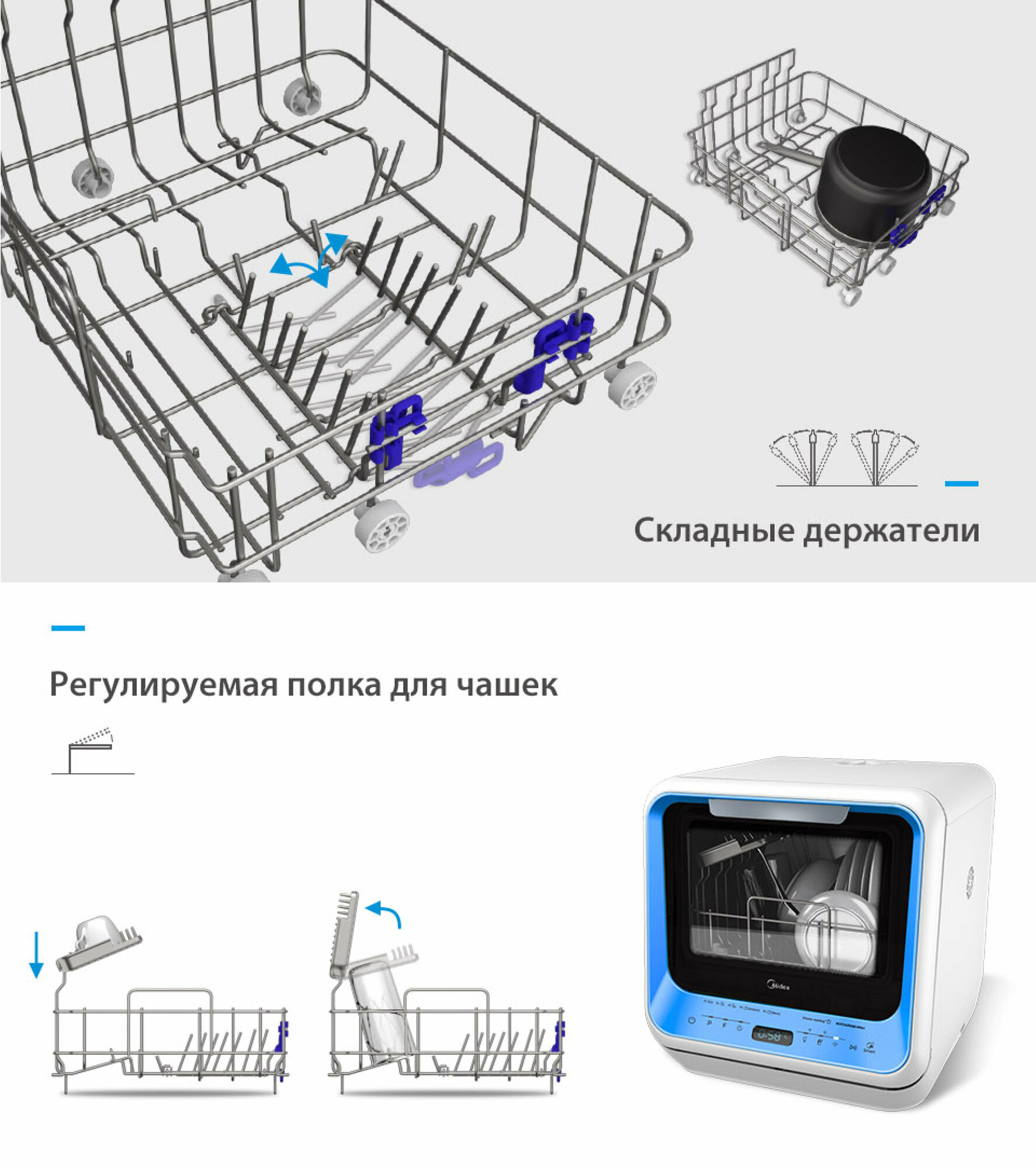 Компактная посудомоечная машина Midea MCFD42900BLMINI-i, голубой интересное: