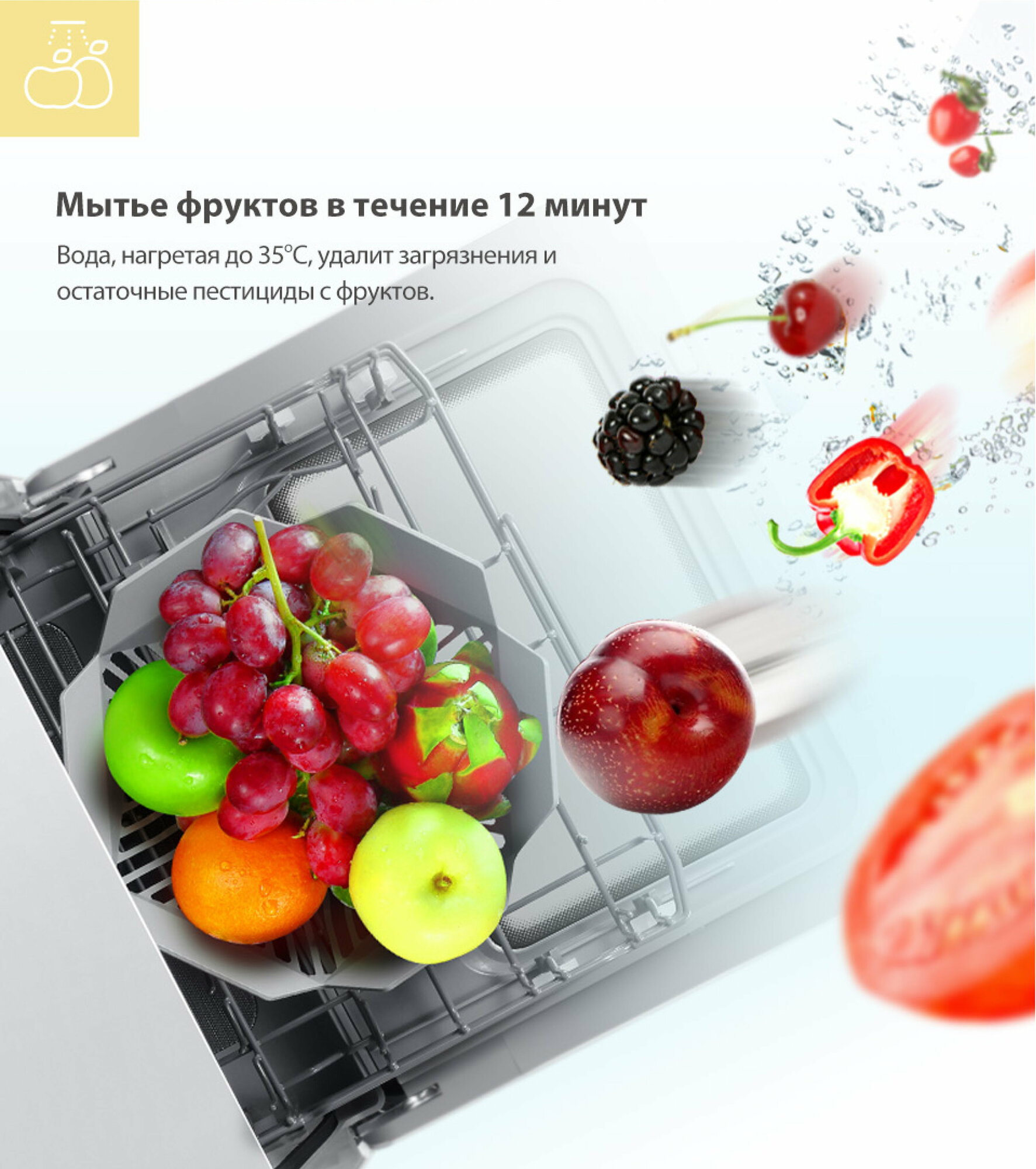 2. Хорошо моет ? 3. Вмещается в мою супермаленькую кухню 4. Не надо подключать к сантехнике, воду я заливаю сама, а шланг смывается сразу в раковину, рядом которой и стоит машинка 5. Использует 5 литров на любом режиме 6. Много режимов, в т.ч. И для мытья фруктов |