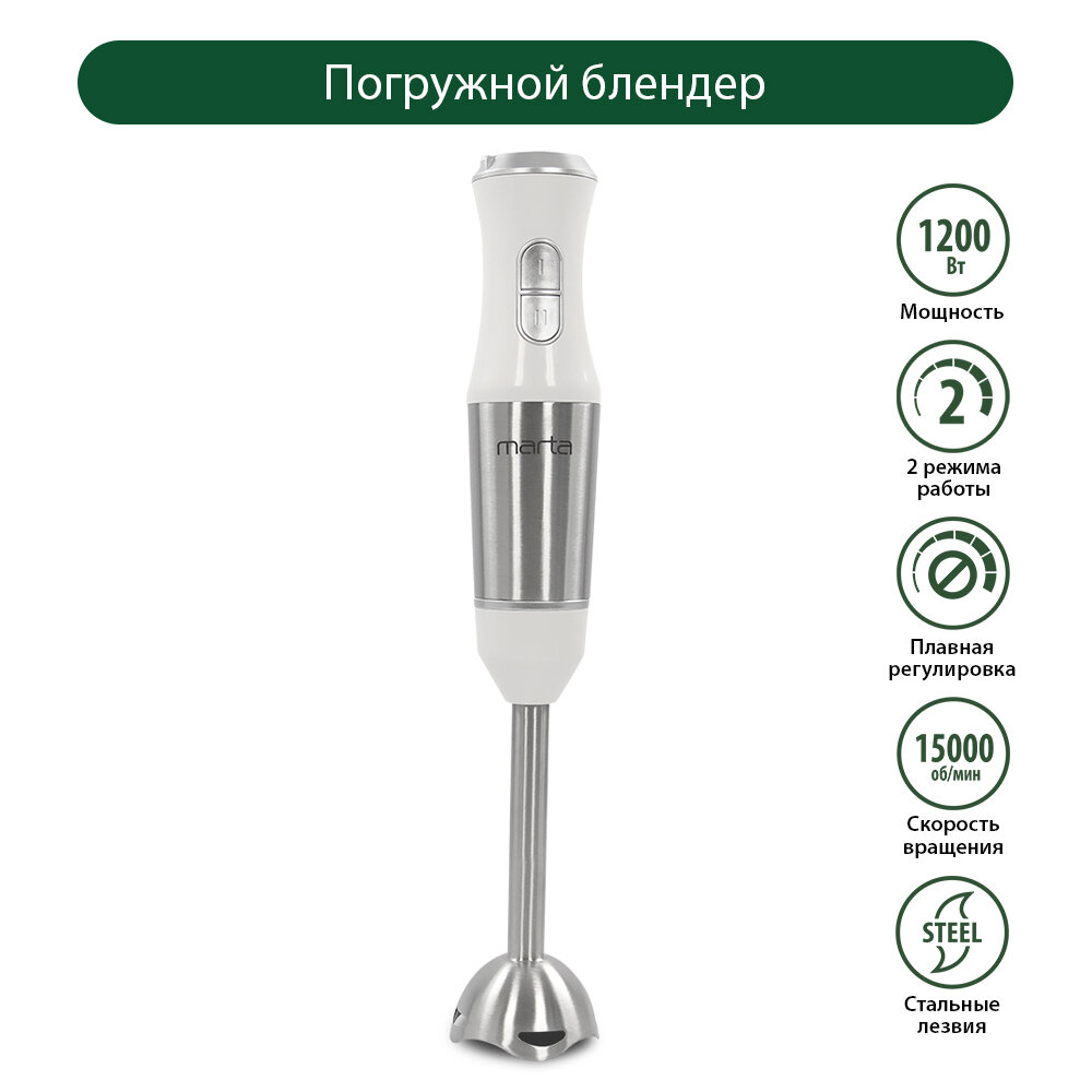Погружной блендер MARTA MT-1574, белый жемчуг