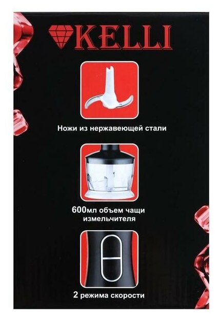Kelli Блендер KELLI KL-5105, погружной, 1200 Вт, 2 скорости, стакан 0.5 л, чёрный