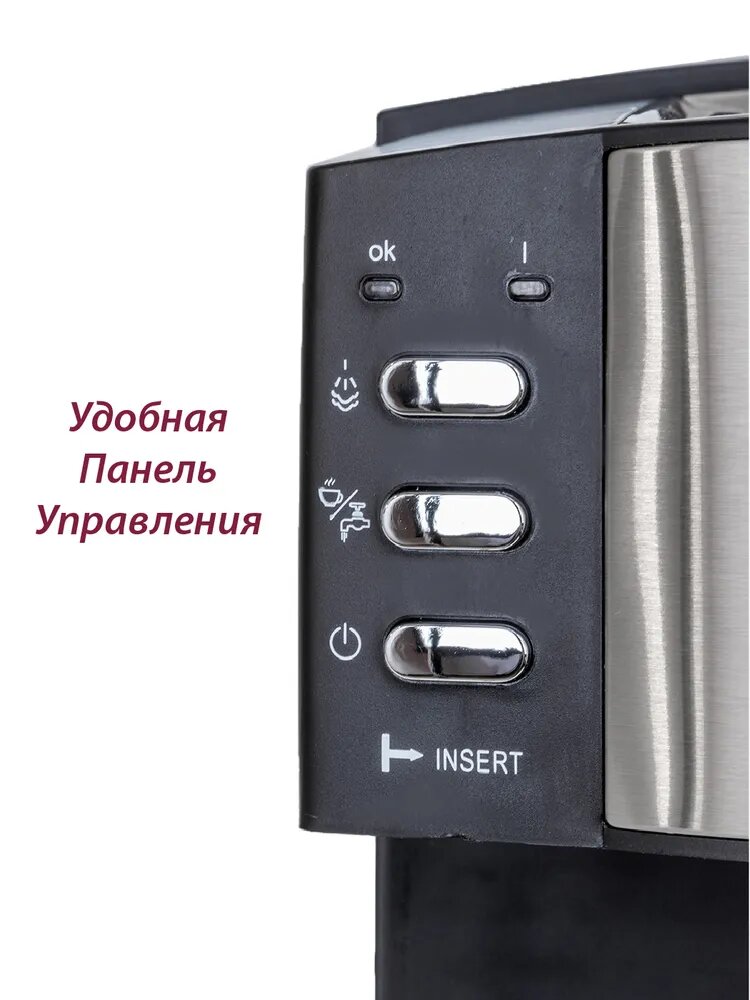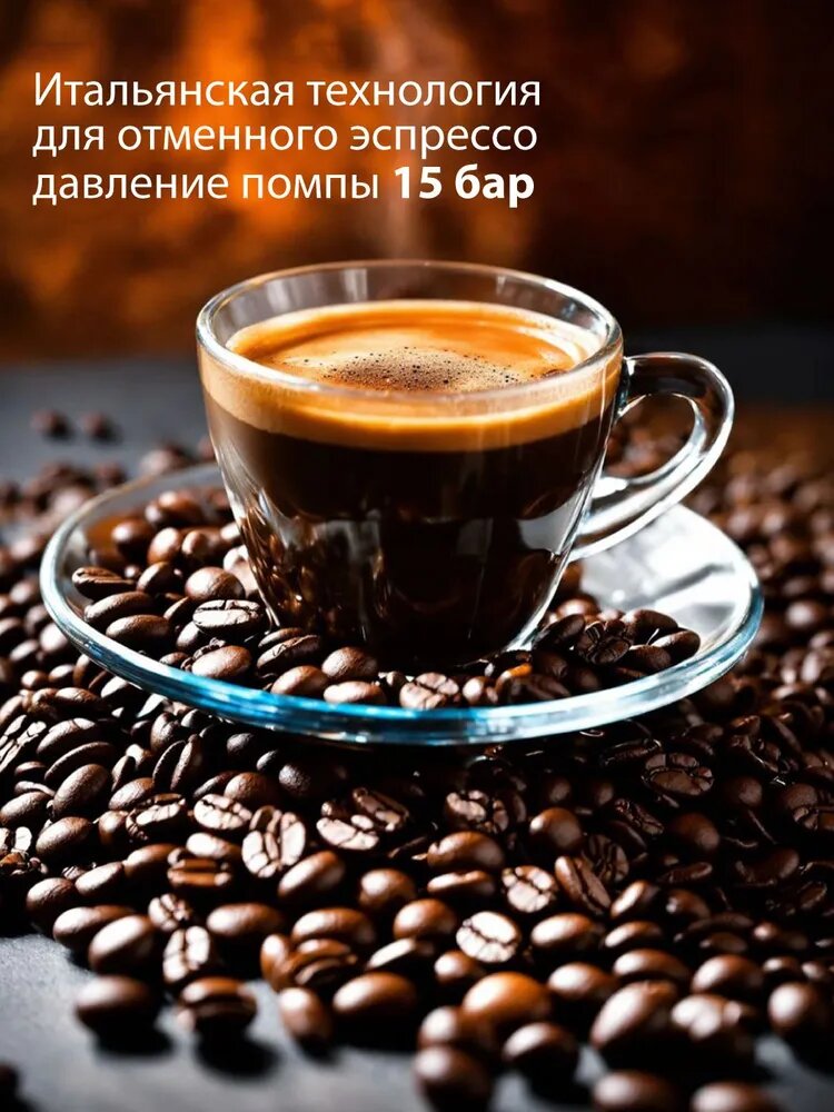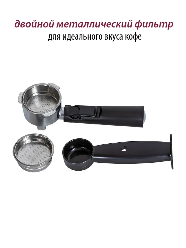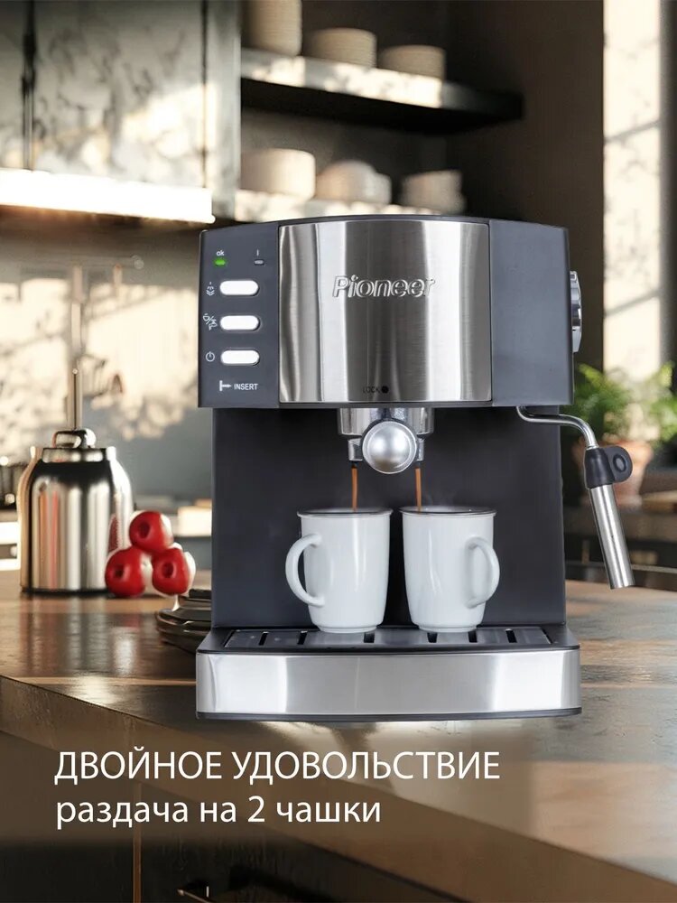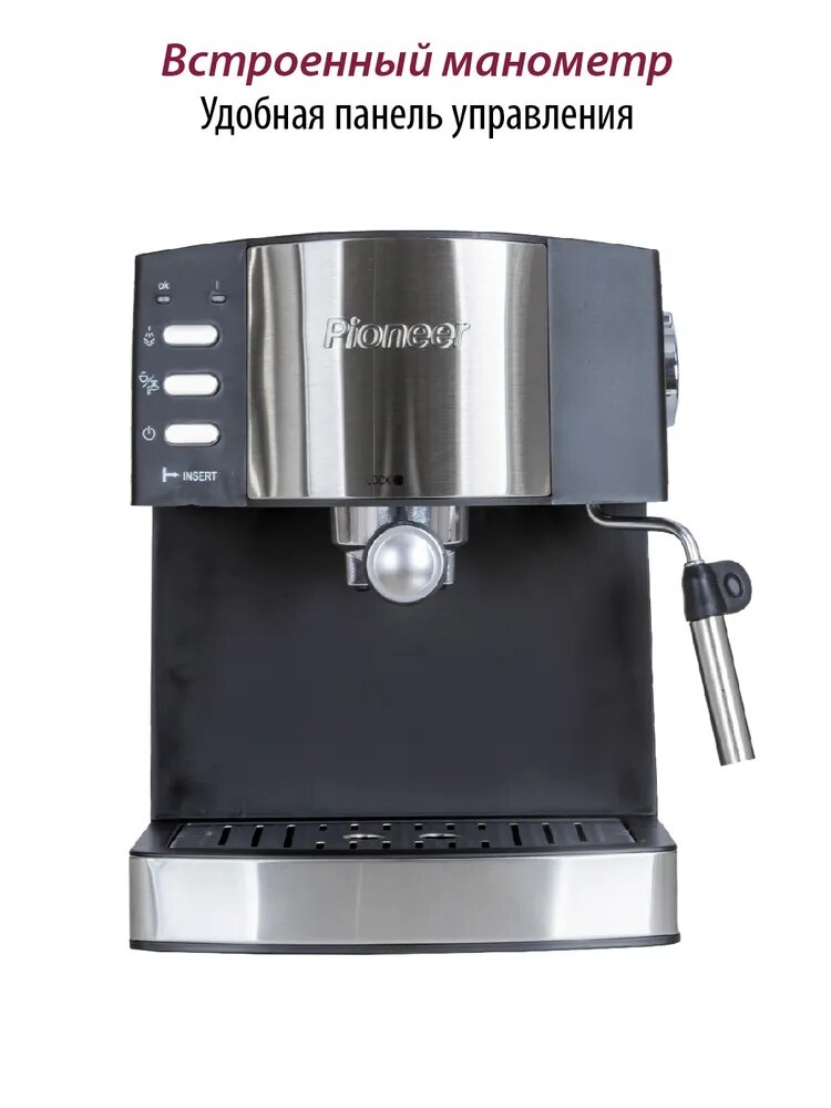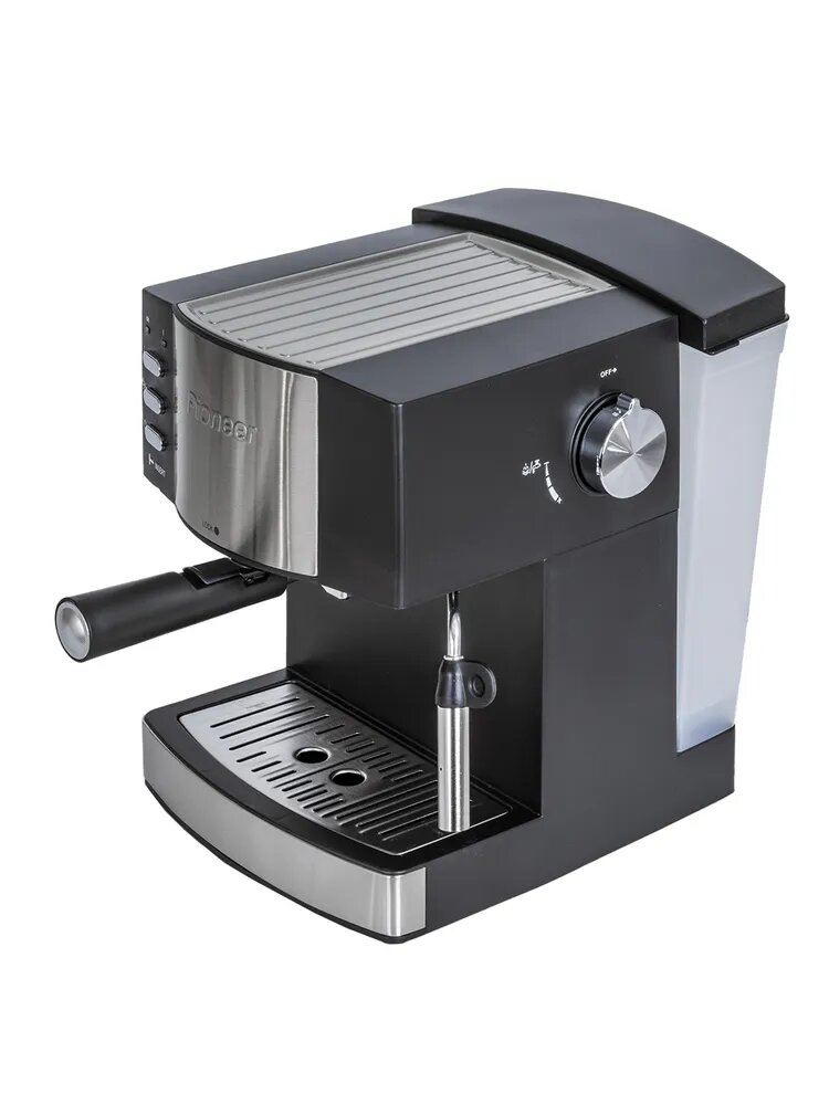 Кофеварка рожковая Pioneer с итальянской помпой, двойным фильтром, защита от перегрева и протекания, 850 Вт