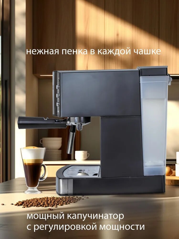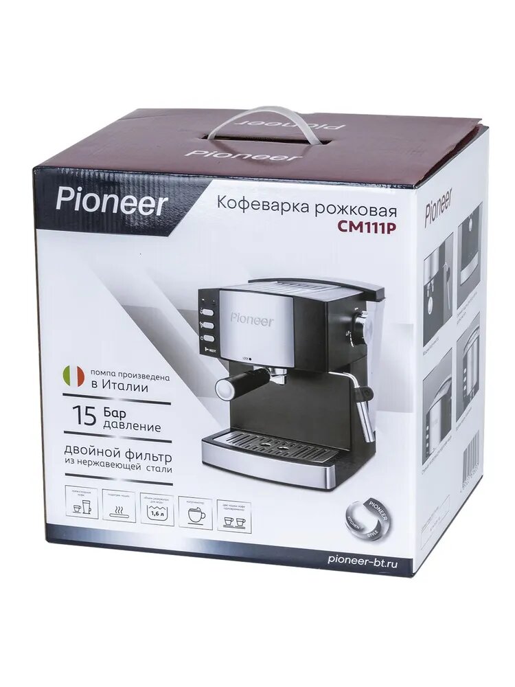 Кофеварка рожковая Pioneer CM111P с итальянской помпой, двойным фильтром, защита от перегрева и протекания, 850 Вт