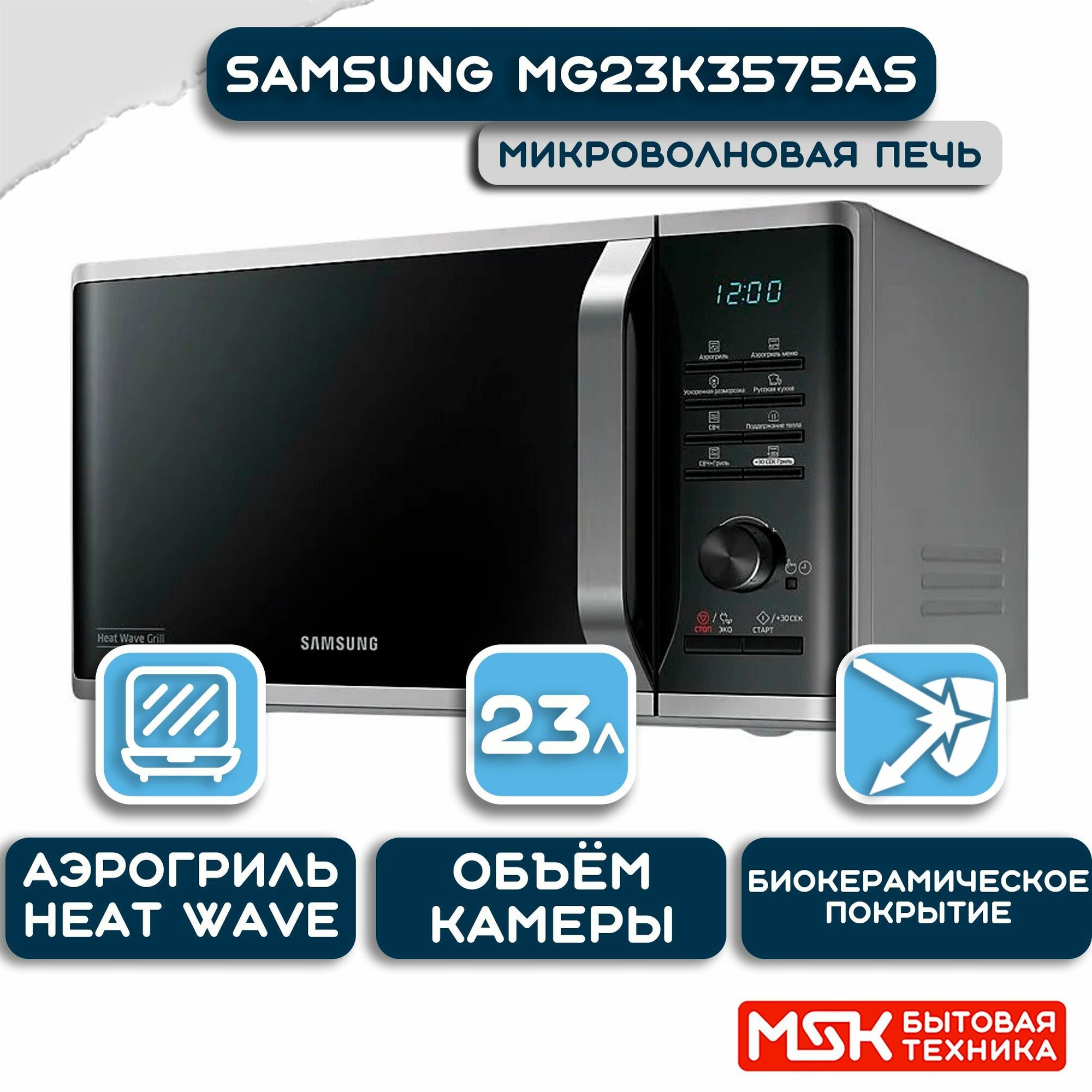 Samsung Микроволновая печь Samsung MG23K3575AS/BW Микроволновая печь, 23л, 800Вт, черный /серебристый