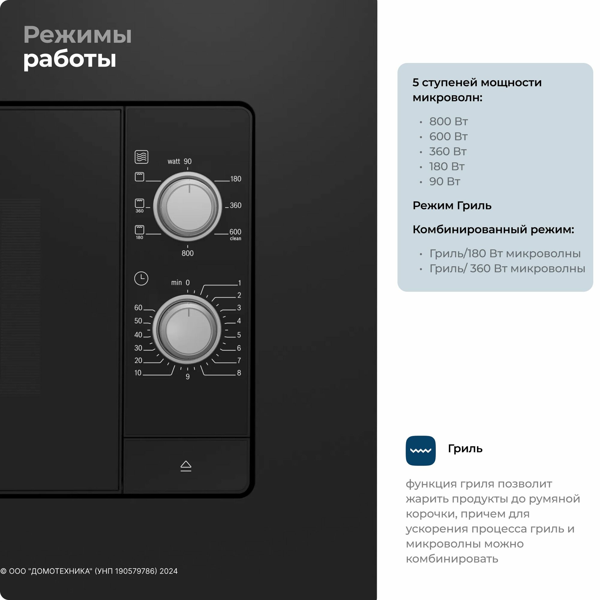 | Режимы работы | гриль / микроволны + гриль / разморозка |