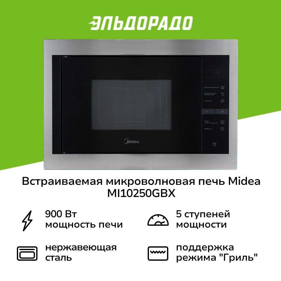 Микроволновая печь встраиваемая Midea MI10250GBX, нержавещая сталь/черный