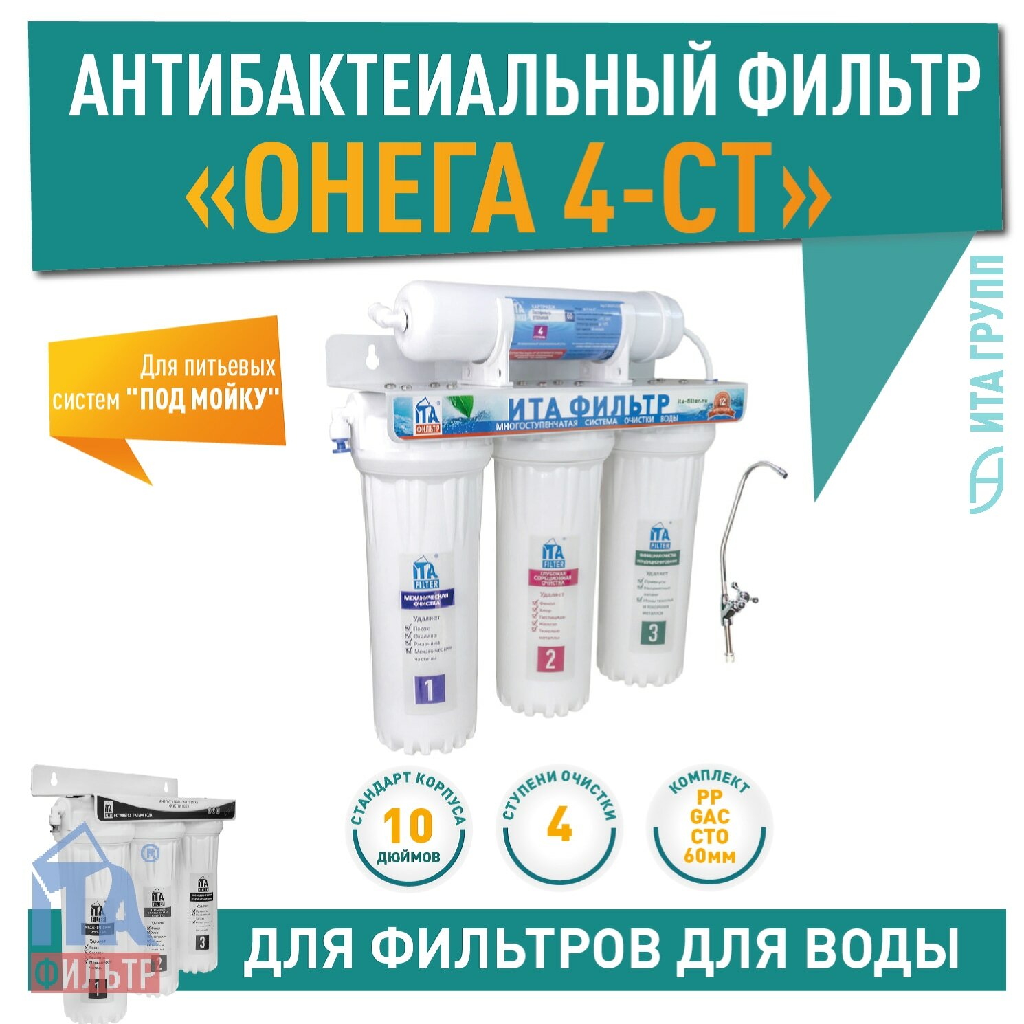 Питьевая система онега 4-СТ Антибактериальный (4-х ступенчатый проточный фильтр для очистки воды, под мойку) интересное: