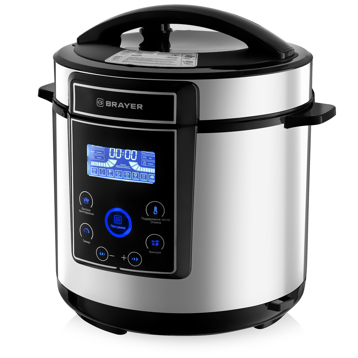 Мультиварка-скороварка Brayer BR2401. 1000 W, 6 литров, 12 программ, цвет черный/серебристый