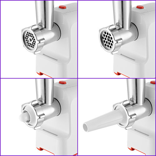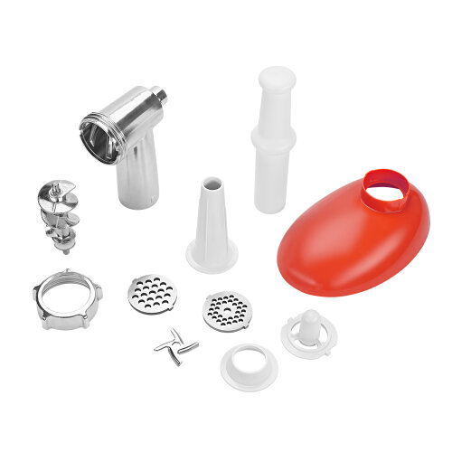 | Дополнительная информация | Комплектация 1. Моторный блок — 1 шт. 2. Загрузочный блок — 1 шт. 3. Загрузочный лоток — 1 шт. 4. Толкатель — 1 шт. 5. Шнек — 1 шт. 6. Насадка для кеббе — 1 шт. 7. Крышка насадки для кеббе — 1 шт. 8. Насадка для колбас — 1 шт. 9. Нож — 1 шт. 10. Кольцевая гайка — 1 шт. 11. Решетка с отверстиями 5 мм — 1 шт. 12. Решетка с отверстиями 7 мм — 1 шт. 13. Руководство по эксплуатации — 1 шт. 14. Коллекционный магнит — 1 шт.* *опционально |