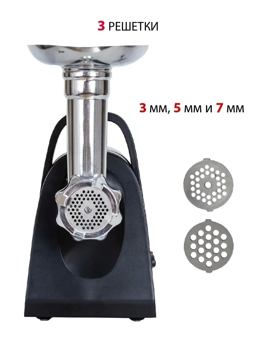 Мясорубка электрическая SUPRA с реверсом, 3 решетками 3 мм, 5 мм и 7 мм, 2000 Вт