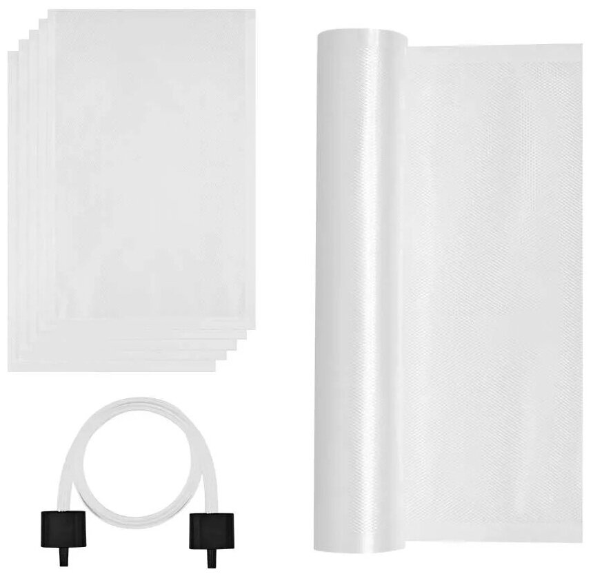 | Подробная комплектация | Комплектация 1. Вакууматор с установленными уплотнителями и термостойким прижимом — 1 шт. 2. Пакеты для вакуумирования (20 х 30 см) — 5 шт. 3. Рулон пленки для вакуумирования (20 х 200 см) — 1 шт. 4. Шланг — 1 шт. 5. Руководство по эксплуатации — 1 шт. 6. Коллекционный магнит — 1 шт.* *опционально |