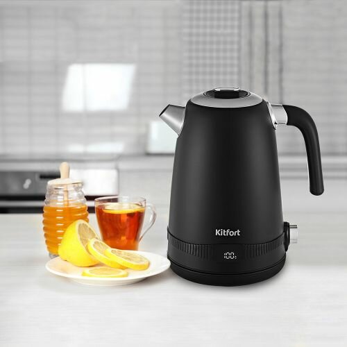 Чайник KITFORT КТ-6121-1, 1,7 л, 2200 Вт, закрытый нагревательный элемент, LED-дисплей, терморегулятор, сталь, черный