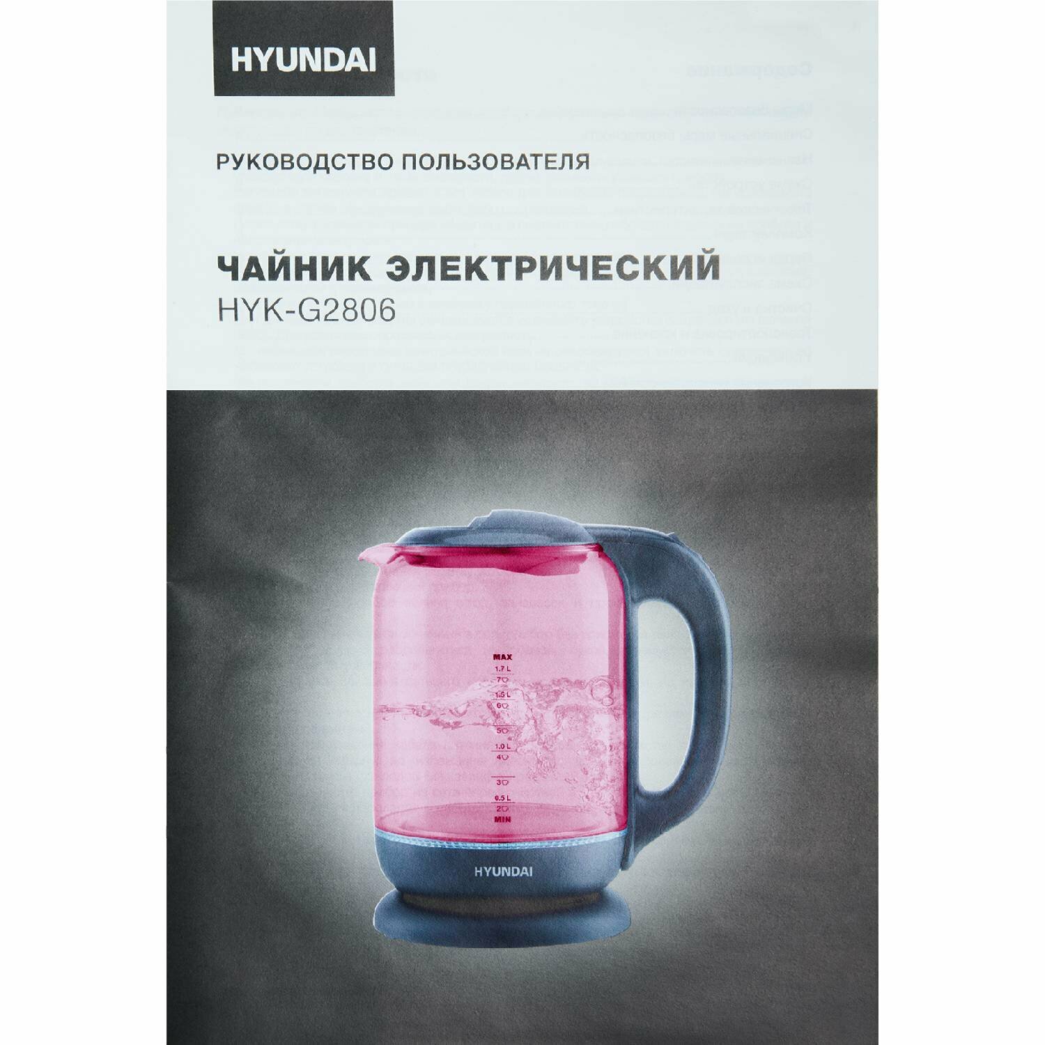 Стеклянный чайник электрический Hyundai HYK-G4808, 1,8 л, стекло малиновое, пластик черный