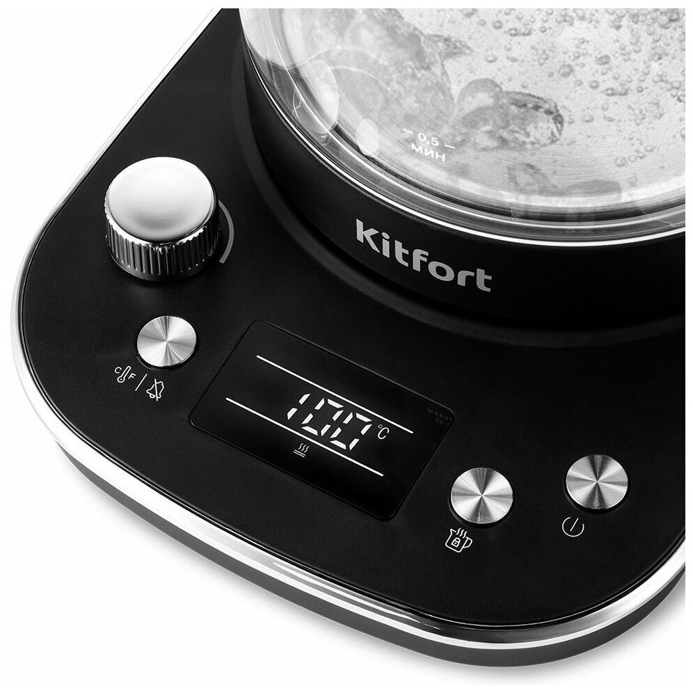 Чайник электрический KITFORT КТ-6157 2200 Вт чёрный нержавеющея сталь 1.6 л пластик/стекло