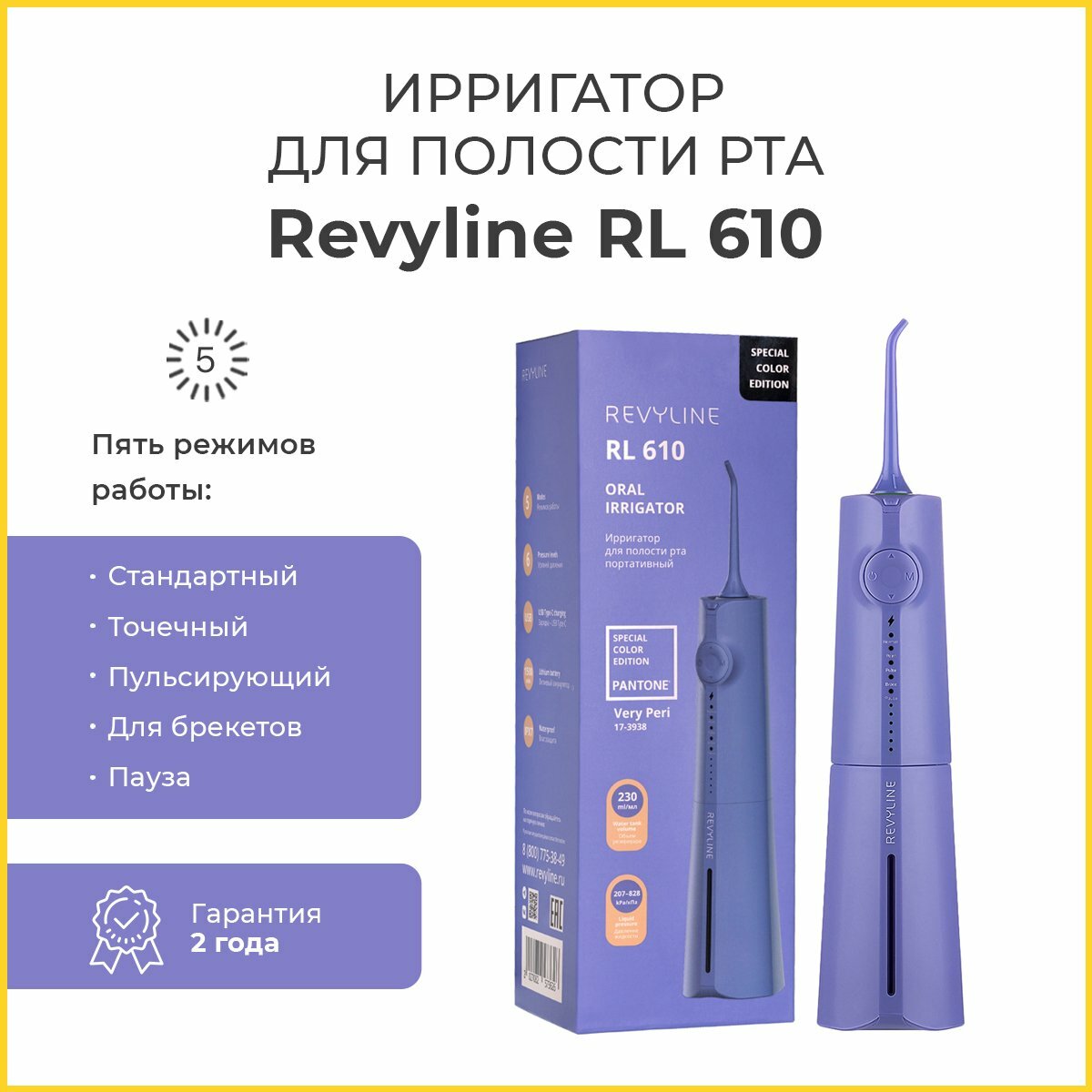 Ирригатор Revyline RL 610 Very Peri (Purple) интересное: